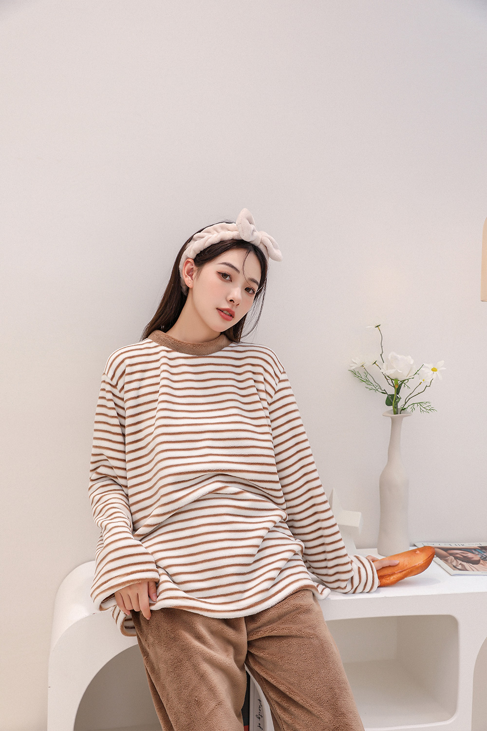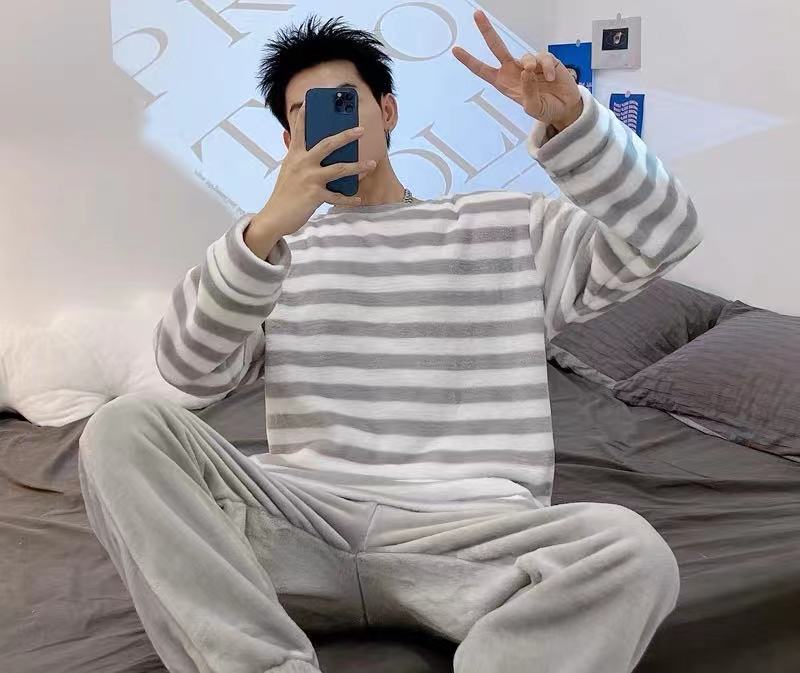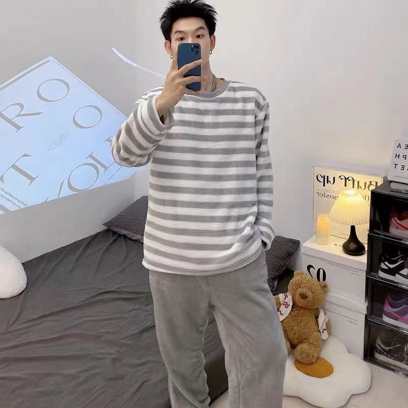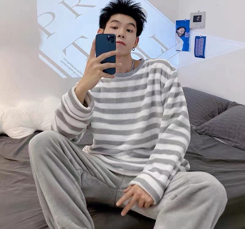 【情侣同款 条纹家居服】情侣条纹家居服 轻盈柔软 680g重 舒适百搭 亲肤柔软 蓄热保暖 情侣装