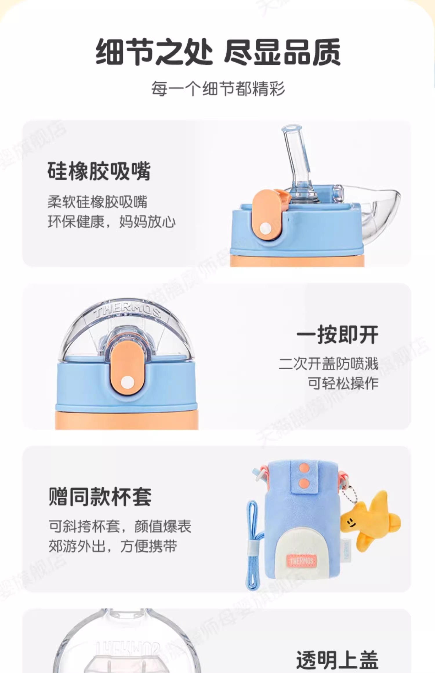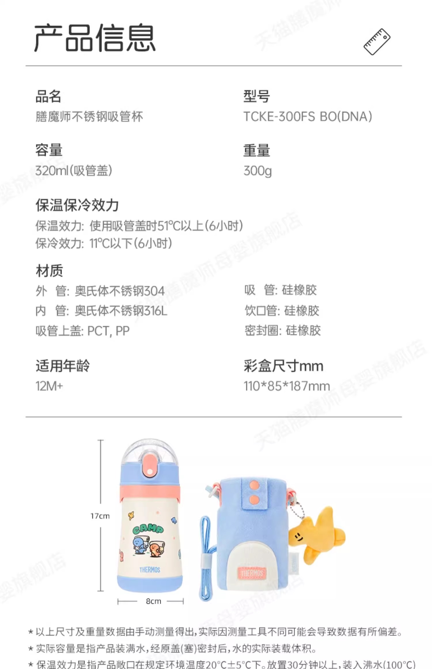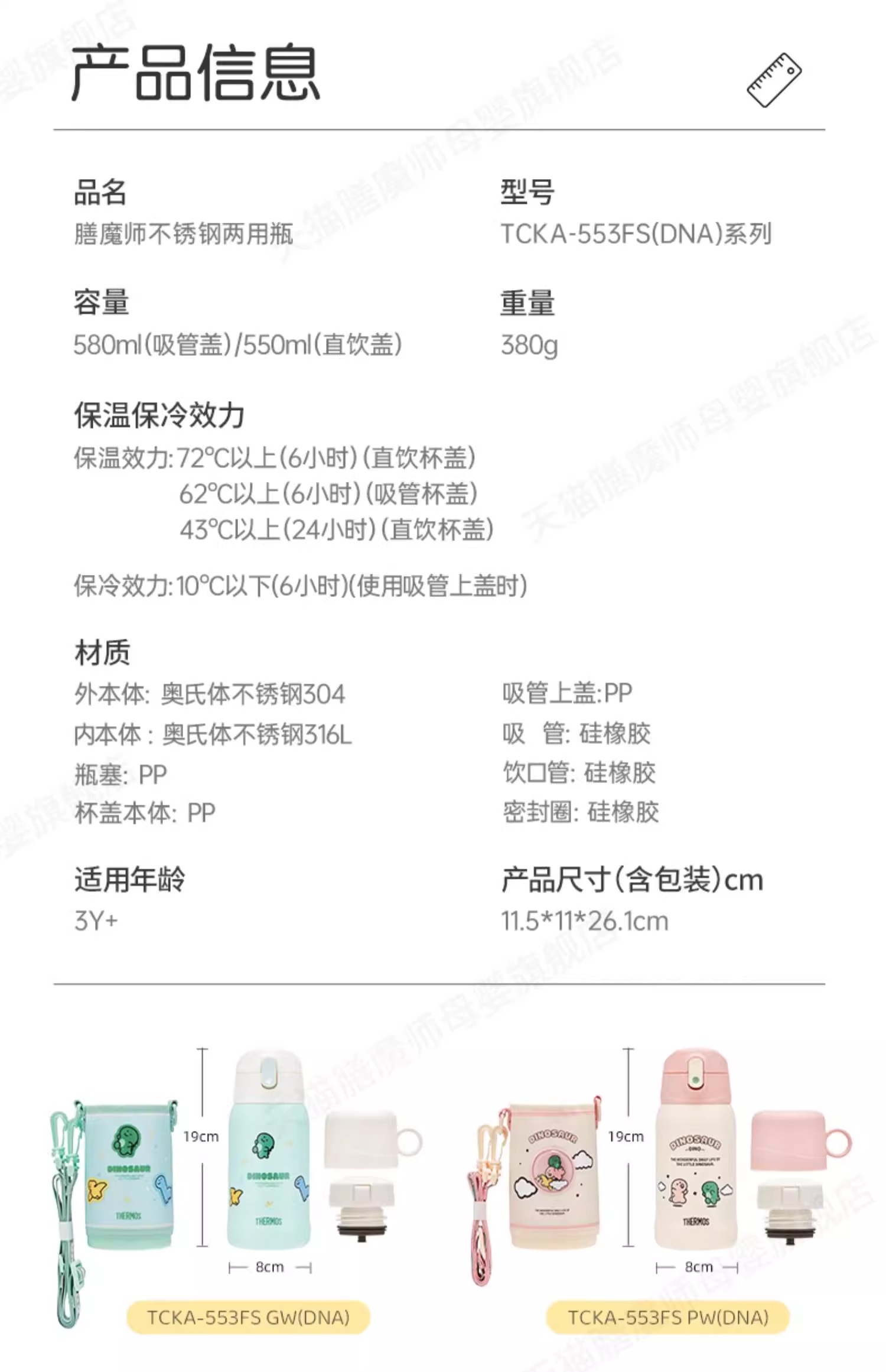 膳魔师儿童保温杯子宝宝吸管不锈钢直饮喝水杯550ml上学专用/SMS-TCKA-553FSPW-DNA