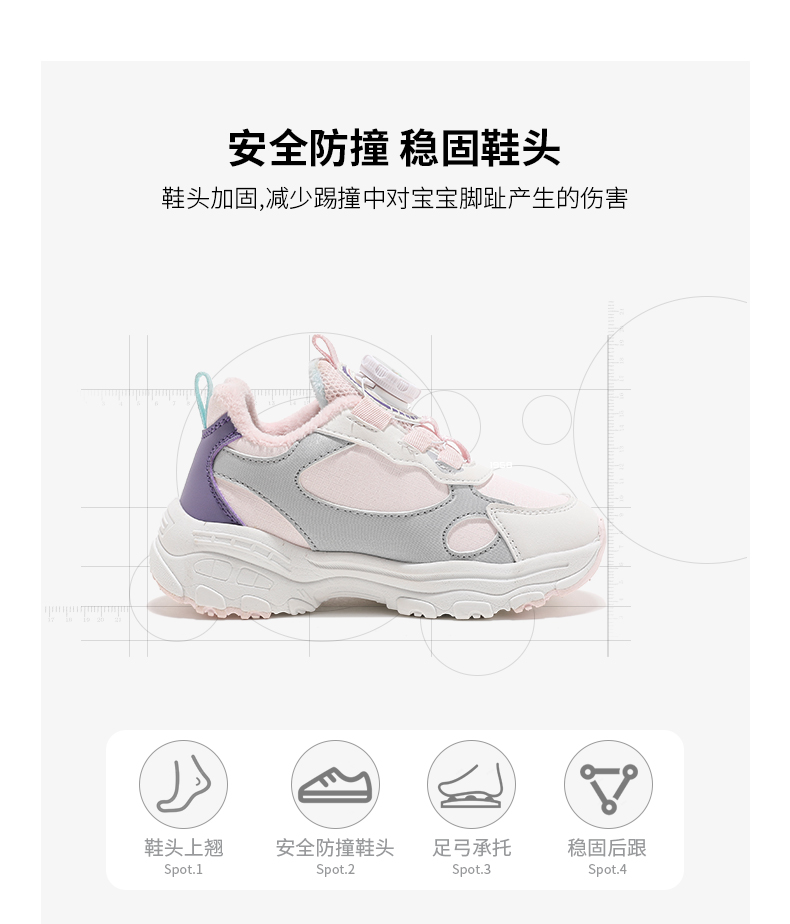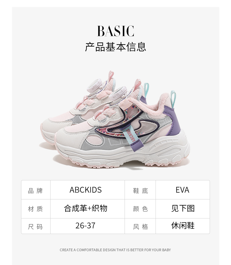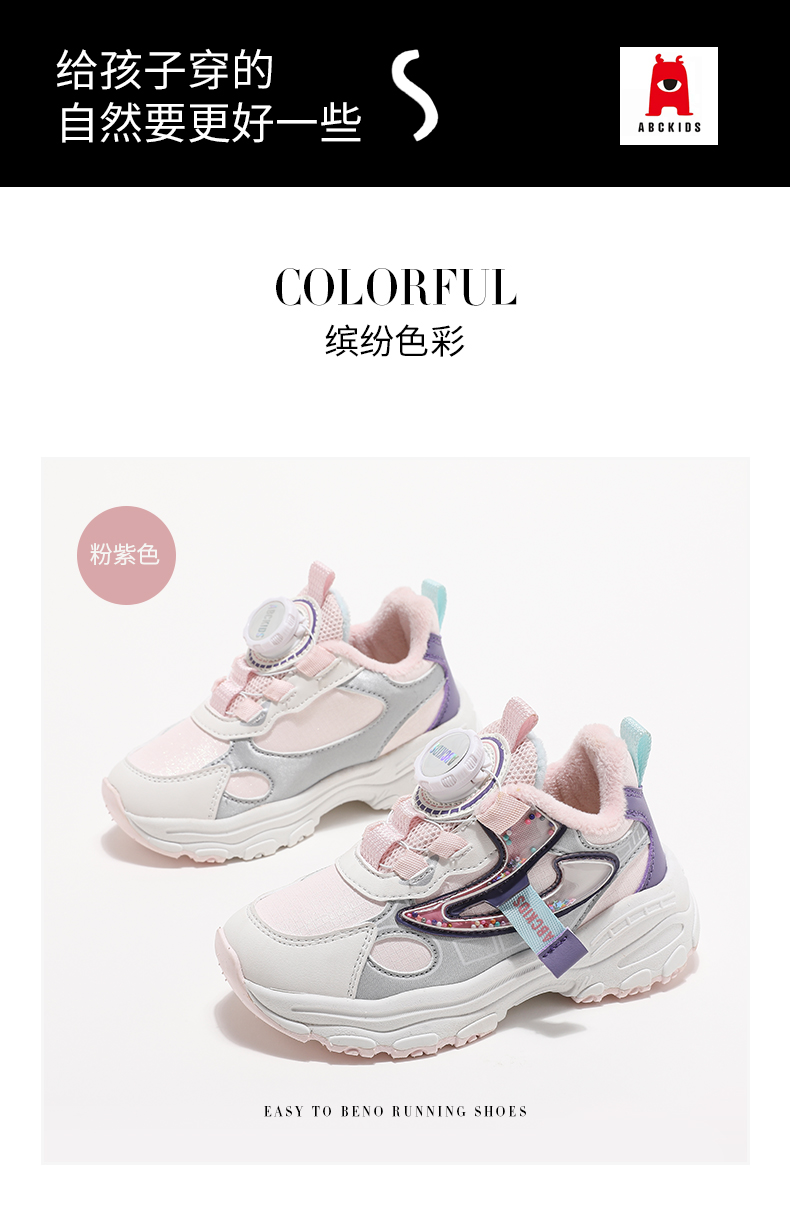 ABCkids童鞋儿童二棉鞋冬季加绒运动鞋女童休闲保暖棉鞋女孩童鞋
