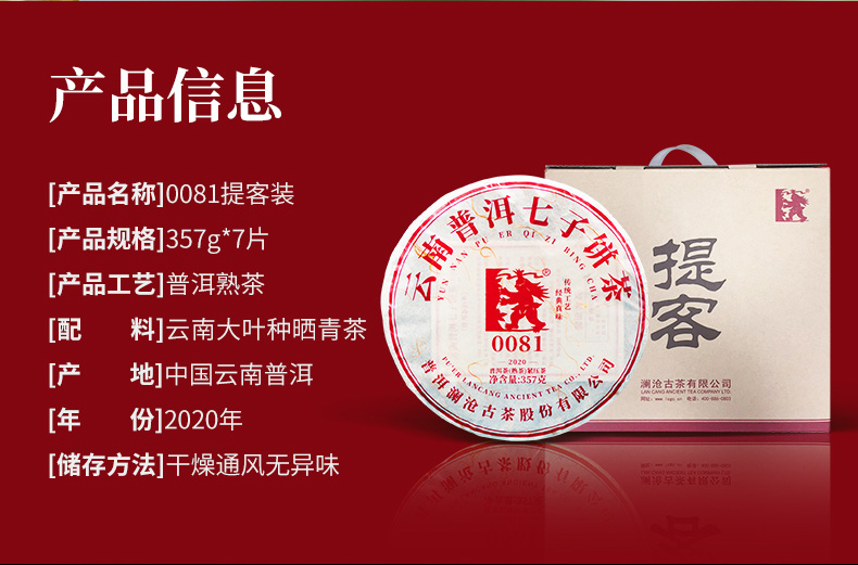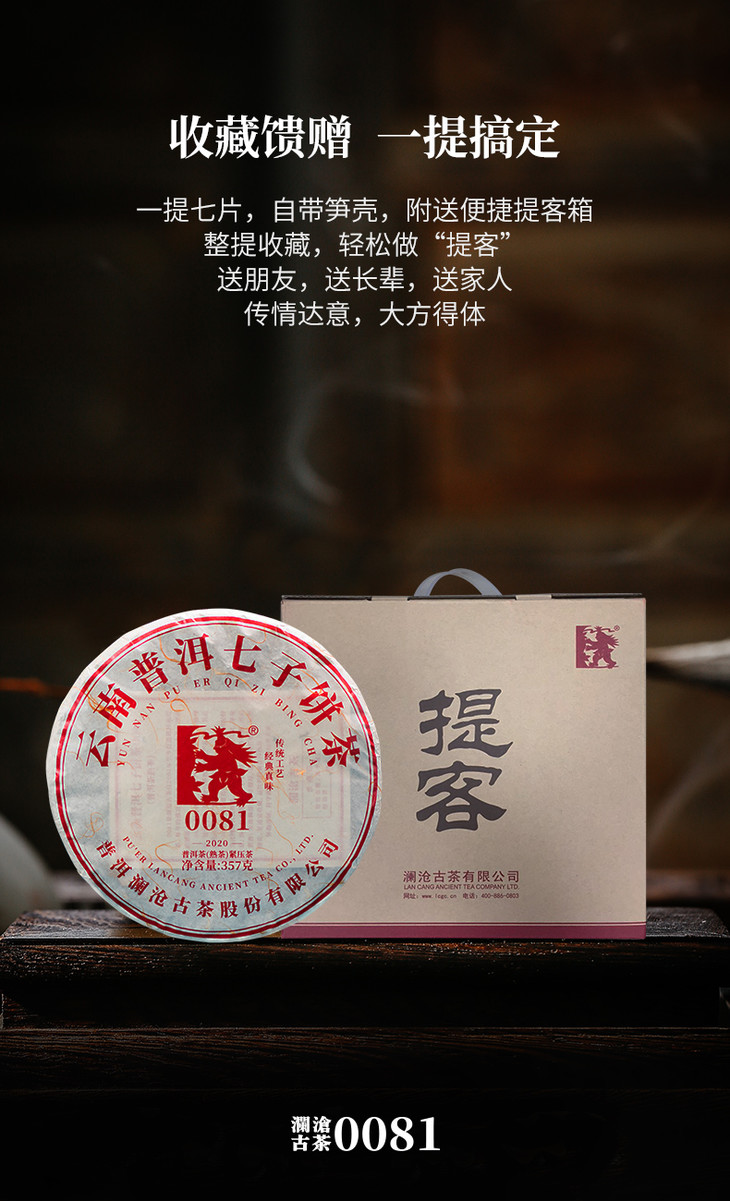 澜沧古茶2020年0081大饼提客装普洱茶熟普熟茶饼357g*7