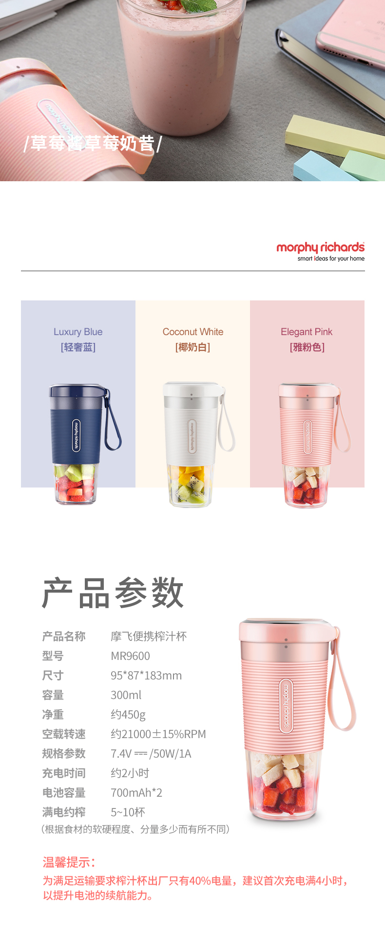 摩飞榨汁杯无线充电便携式MR9600家用电动小型水果汁机宿舍学生