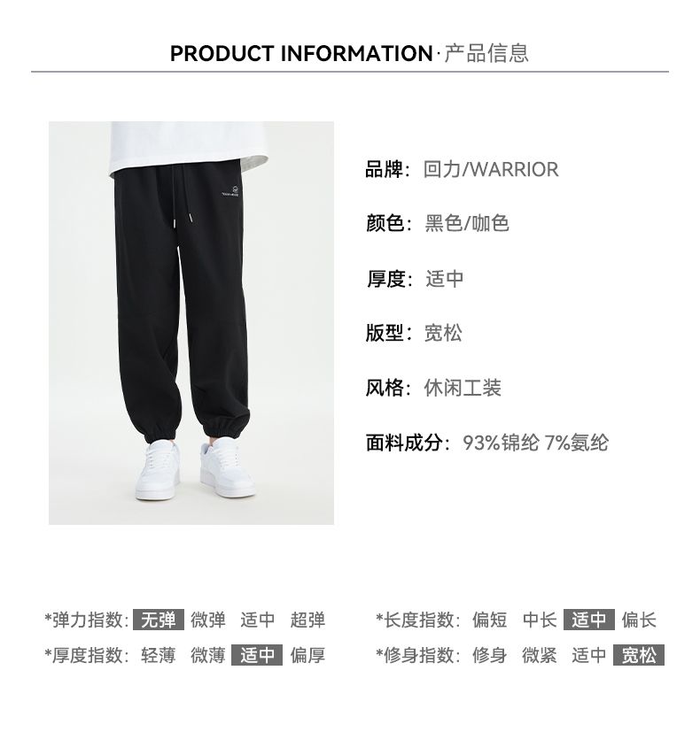 回力工装裤男2025春秋新款黑色束脚休闲裤潮流百搭运动宽松长裤子