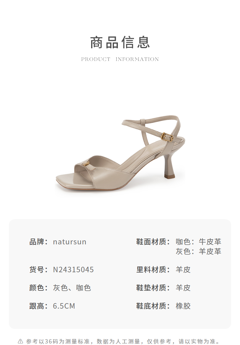 natursun凉鞋女款夏季法式仙女风气质一字带细跟高跟鞋女N24315045