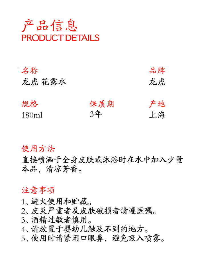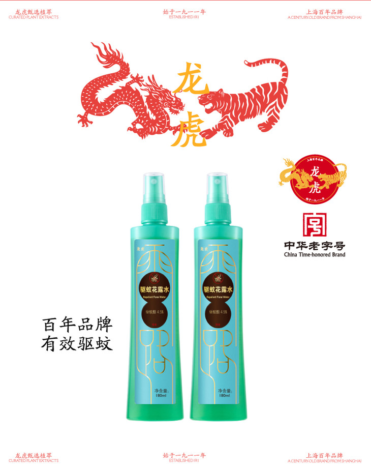 龙虎经典普露花露水180ml 驱蚊花露水180ml 清凉清新爽肤 清凉薄荷精油9ml/6ml 植物清香 开车居家四季常备