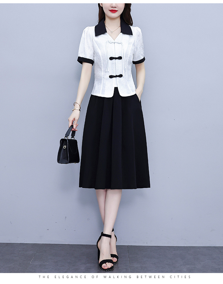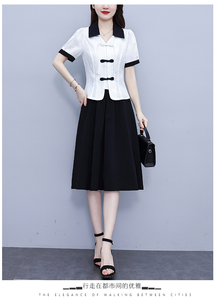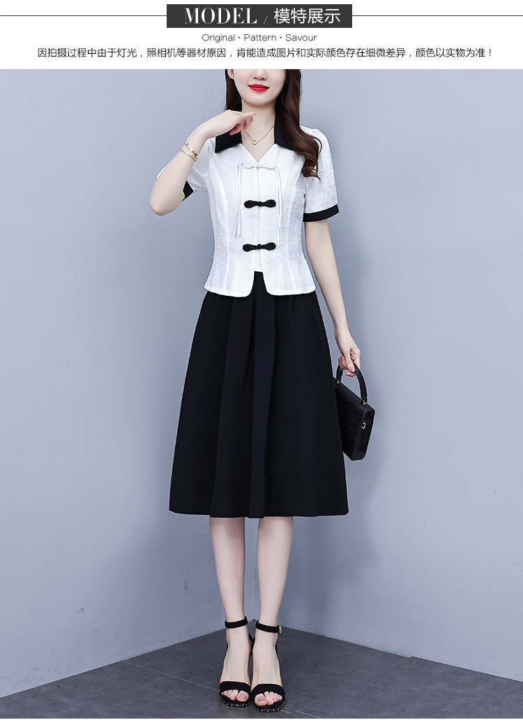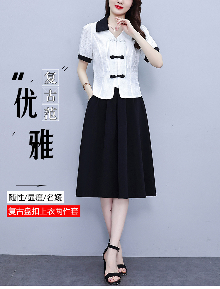 款中式盘扣设计复古气质,修身衬衫半身裙两件套AHM-yzy2670