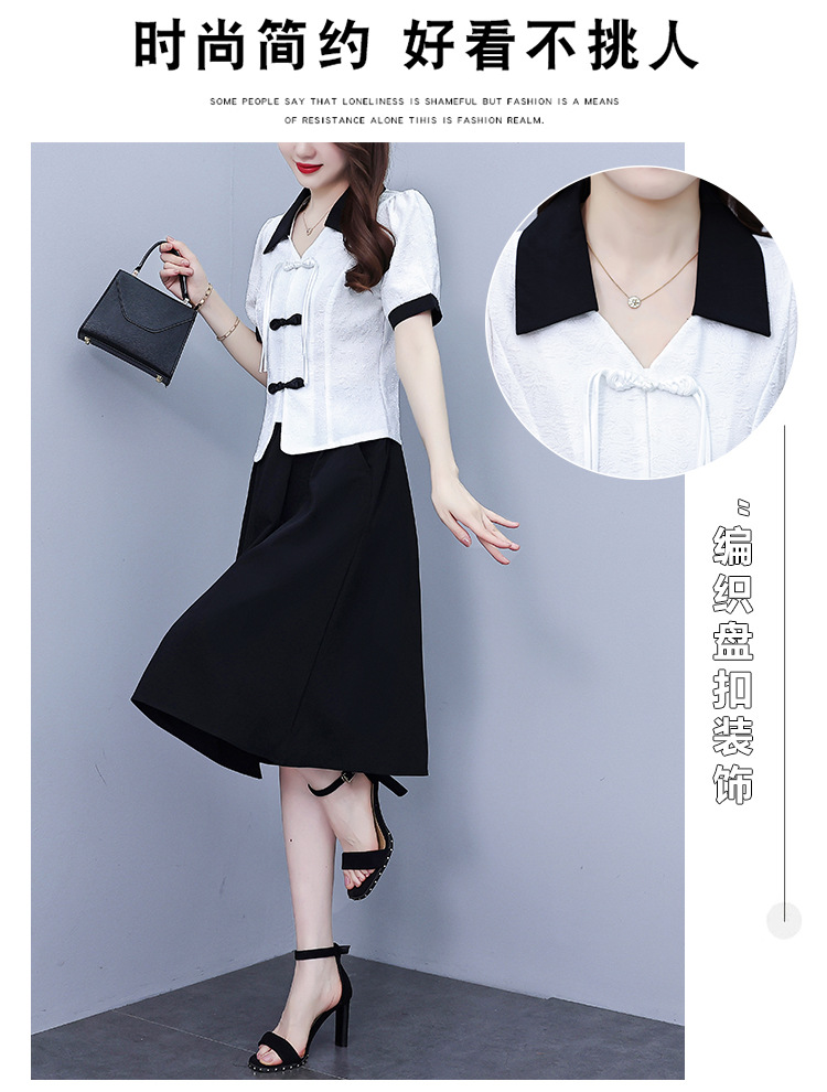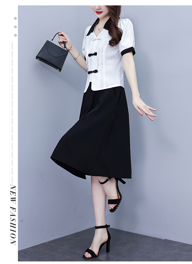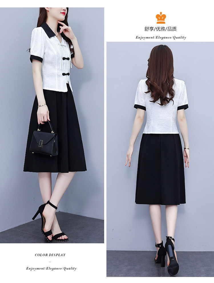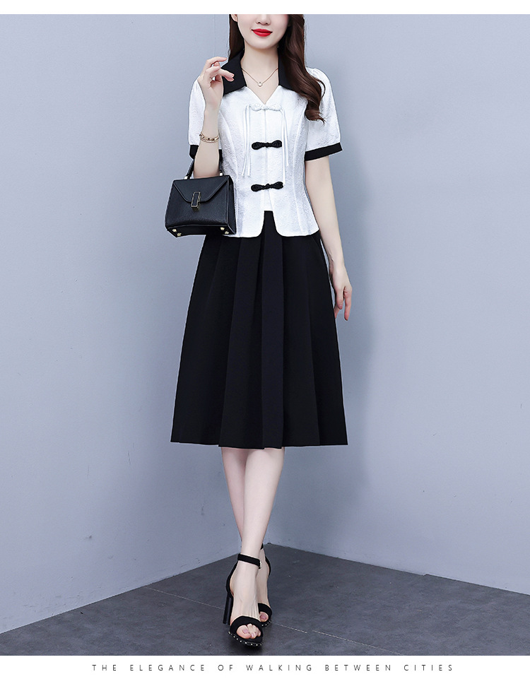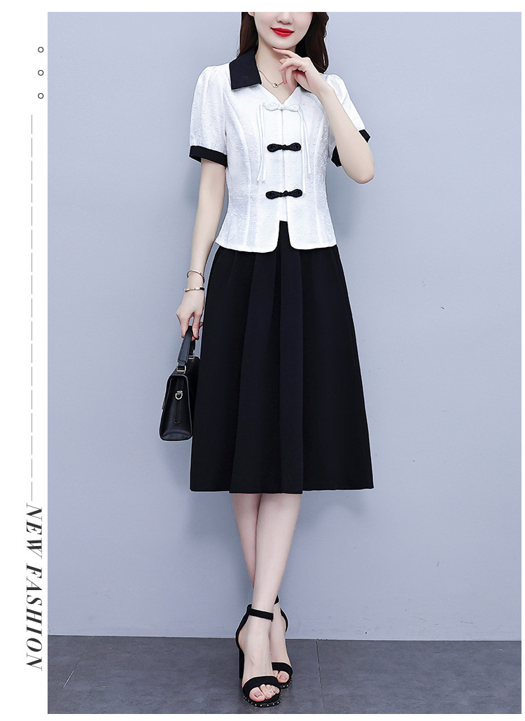 款中式盘扣设计复古气质,修身衬衫半身裙两件套AHM-yzy2670