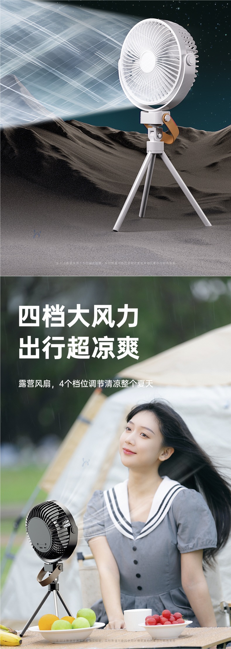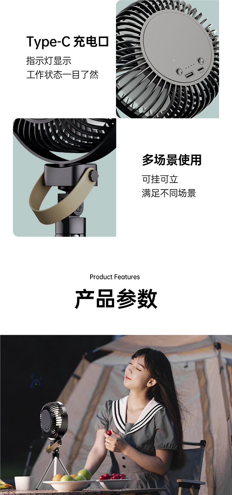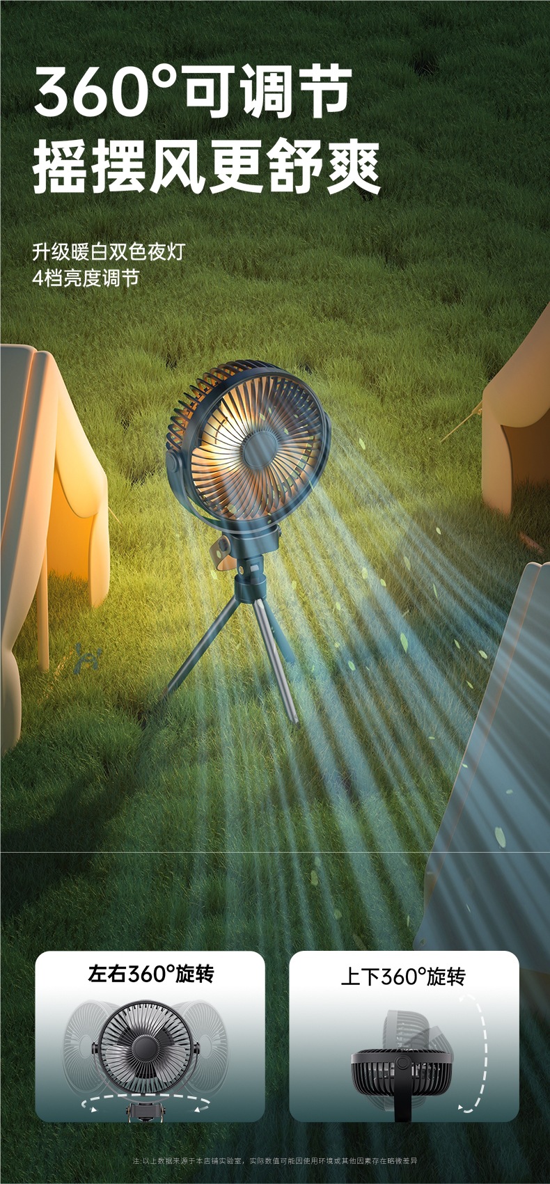 【新款户外露营电风扇】可充电便携式迷你小风扇 野营钓鱼帐篷三脚架吊扇