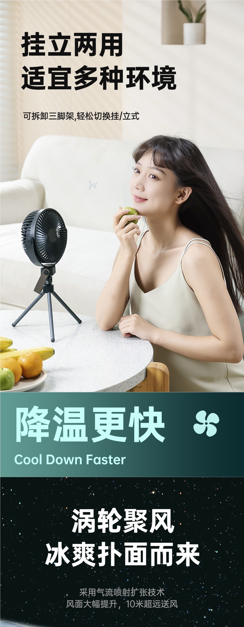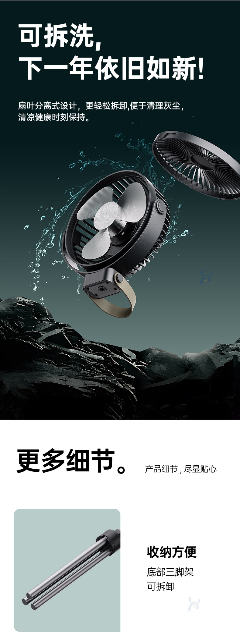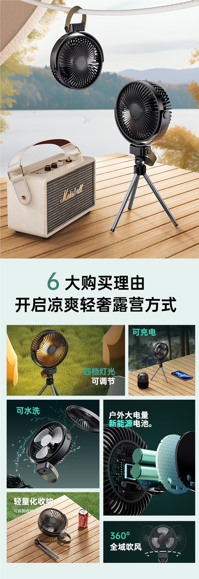 【新款户外露营电风扇】可充电便携式迷你小风扇 野营钓鱼帐篷三脚架吊扇