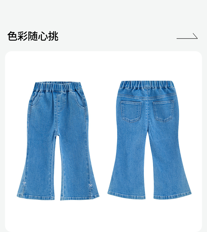 笛莎童装女童裤2024秋季新款女童微喇牛仔裤