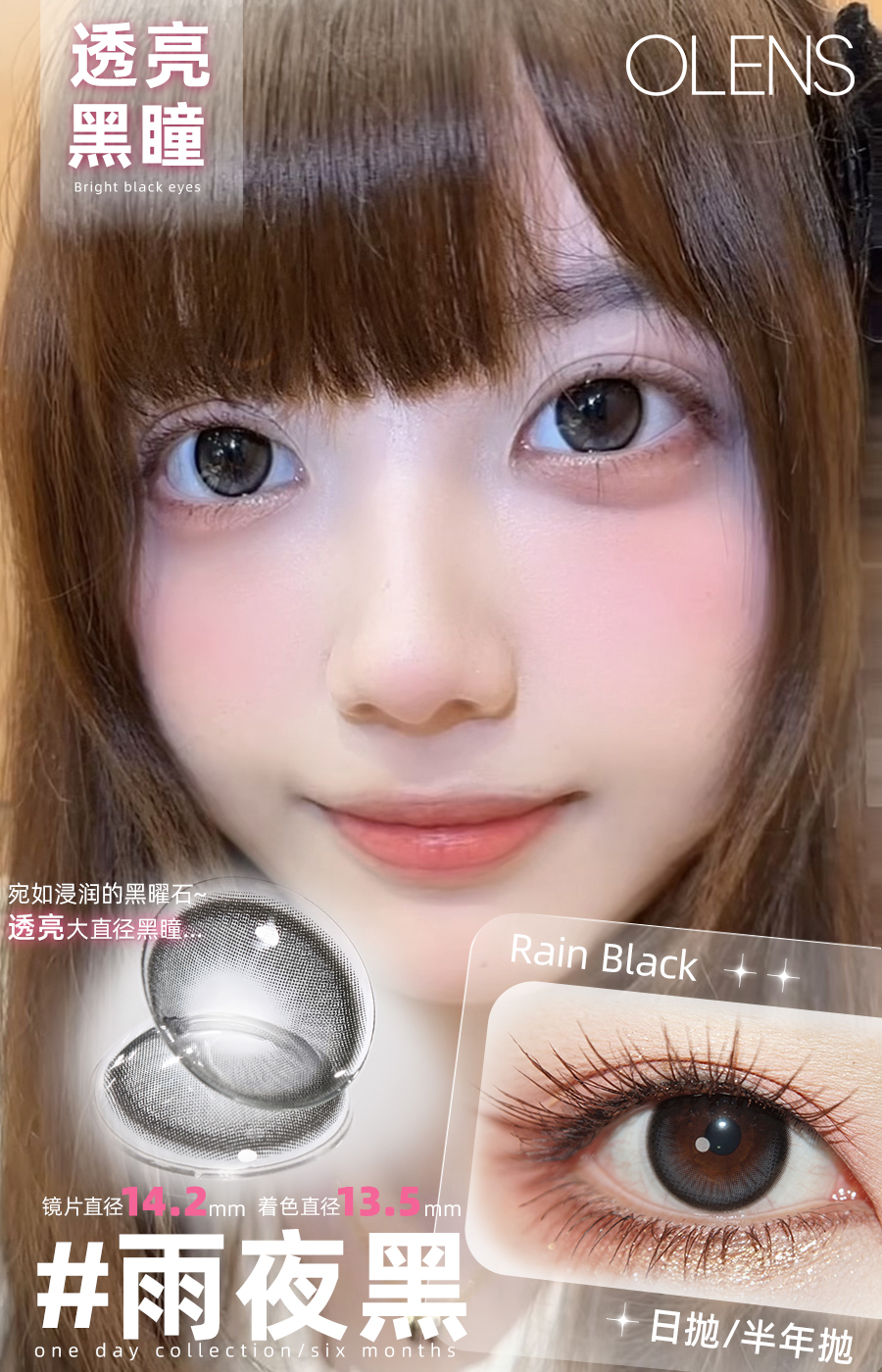 Olens半年抛 小鹿夜巧/小鹿夜黑/雨夜黑 moodnight/rain 14.2mm 有同款日抛