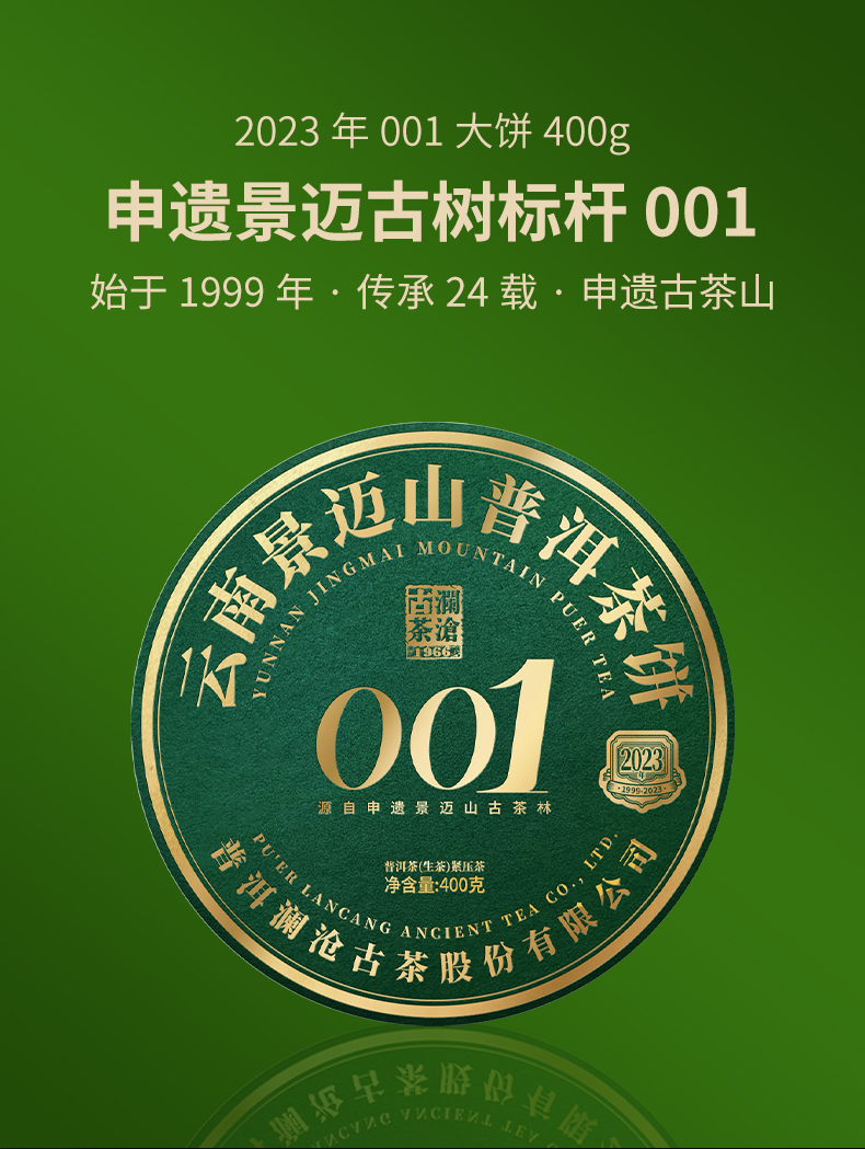 【标杆】澜沧古茶2023年001普洱茶生茶景迈山古树春茶饼茶叶