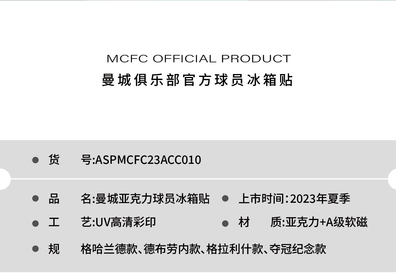 曼城俱乐部官方商品 | 格拉利什德布劳内冰箱贴磁铁足球球迷周边