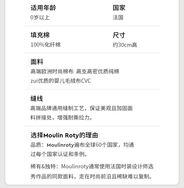 Moulin Roty 小鸭玩偶 法式玩偶 适合全年龄 原创故事形象 进口面料 农场大家庭系列 法国品牌-632275