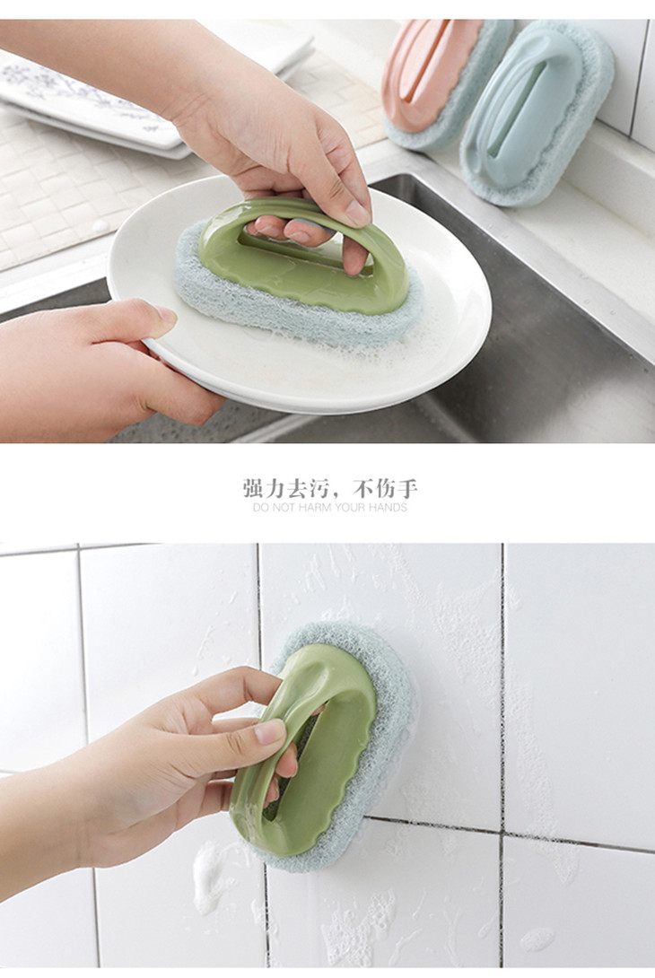 家居日用带柄魔力刷3个装 浴室瓷砖刷厨房洗锅海绵擦清洁刷