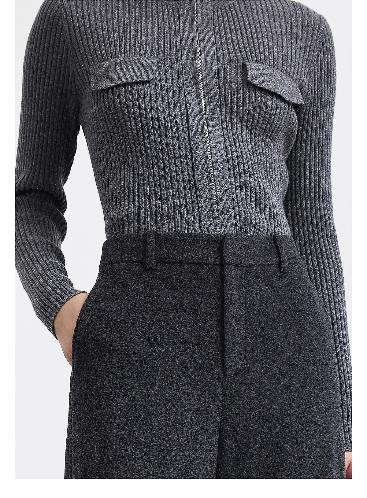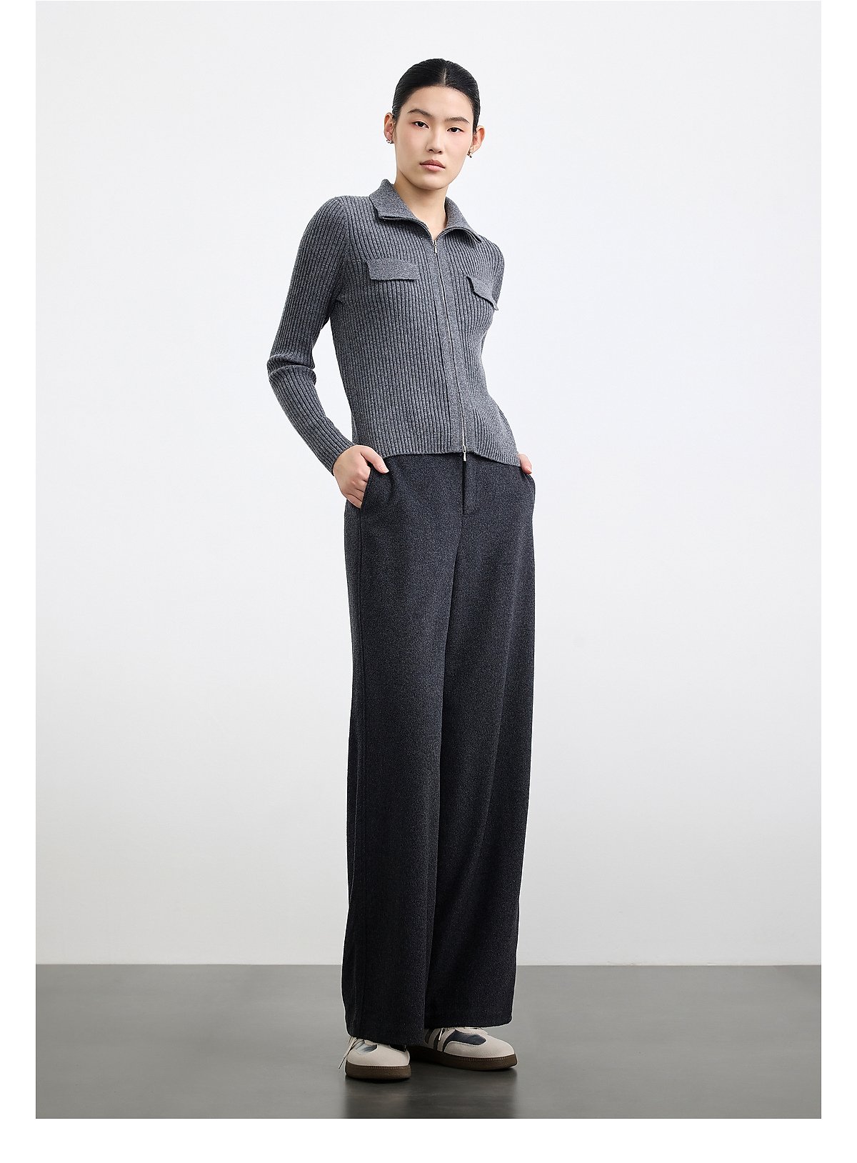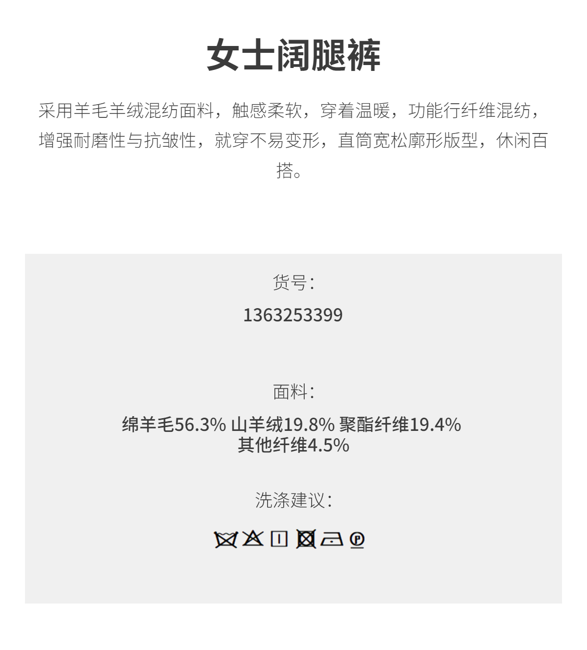 PURE TOUCH女装 25秋冬新款绒毛混纺高腰阔腿裤百搭保暖休闲长裤