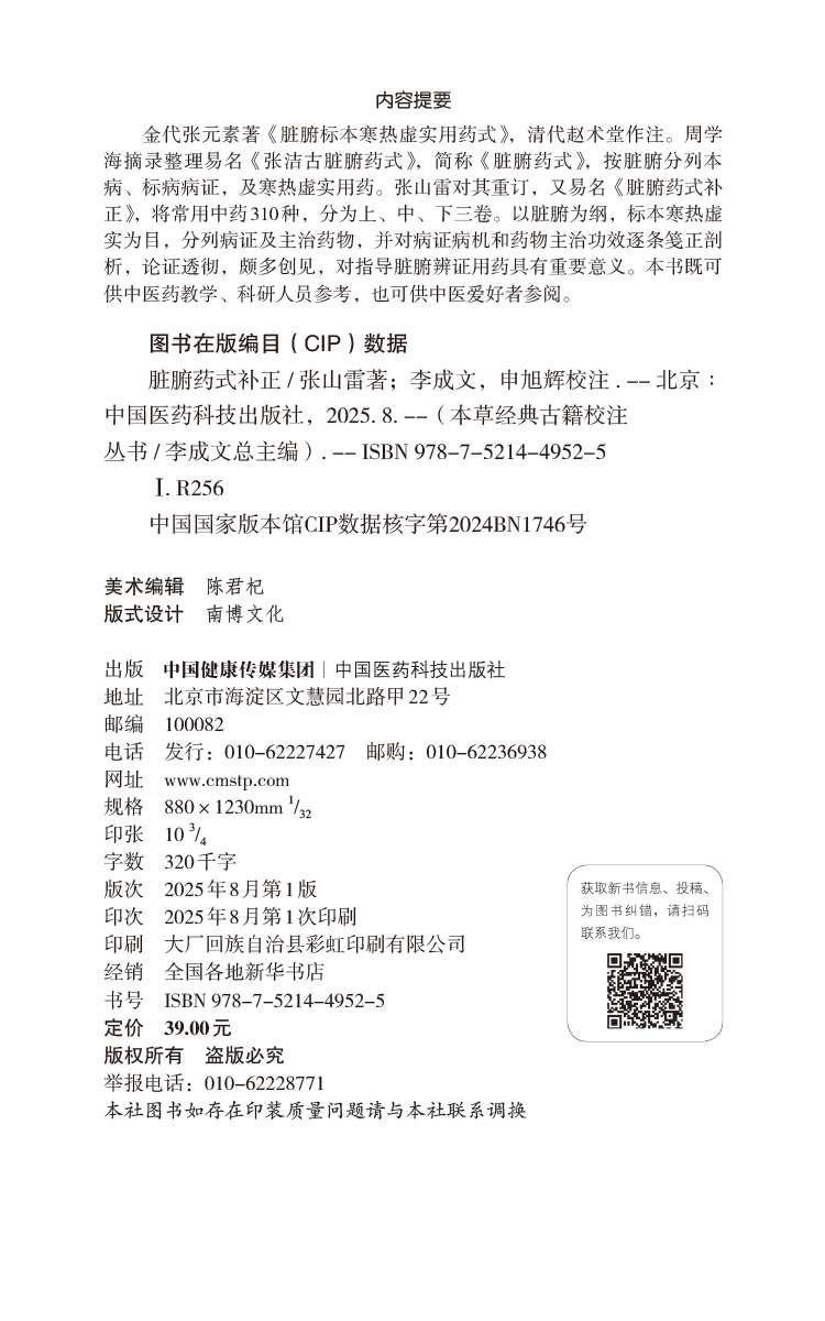 书名:脏腑药式补正(本草经典古籍校注丛书)