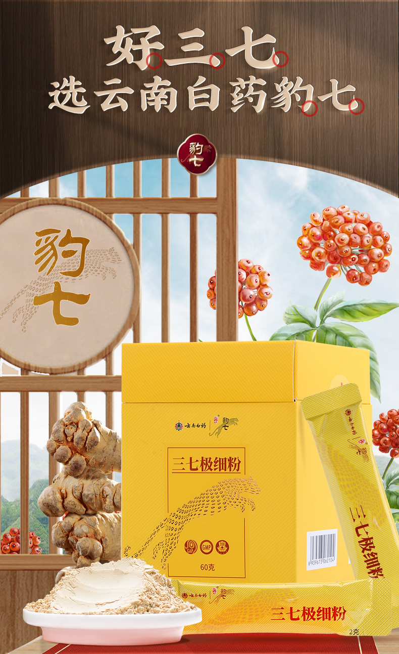 【官方正品】云南白药豹七三七极细粉2g*30袋便携独立包装文山三七打粉好吸收