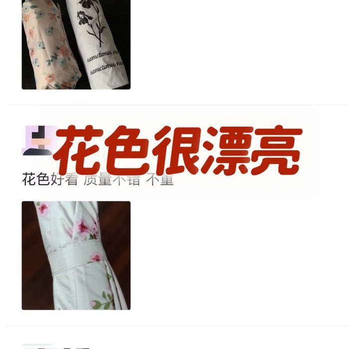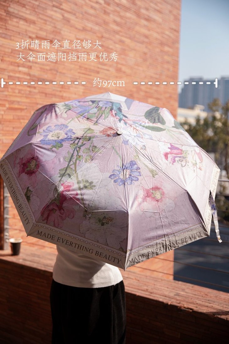 AVRN法式风伞 【规格】(五折手动款)50*6K 、(三折手动款)53.5*8K、(三折自动款)53.5*8K 【颜色】花序、法式碎花、紫罗兰、蓝碎花、蓝花、粉碎花、英文玫瑰、粉蔷薇、黑玫瑰、新花色-兽与花香、新花色-孔雀开屏、新花色-红粉佳人、新花色-小雏菊、红山茶花、花色-五彩斑斓、新花色-黄色碎花、新花色-红玫瑰 【材质】 聚酯纤维 【尺寸】五折长度18CM 、三折长度28CM 【发货地】浙江 【发货时间】3-5天 【发货快递】邮政 【包装方式(纸箱或者袋子)】 纸箱【不发货地区】新疆、西藏、内蒙、青海及港澳台不发货。北京上海➕1 【售后政策】不影响二次销售支持七天无理由,非质量问题退回运费自理。无理由退货,出单号后拦截拒收扣3!