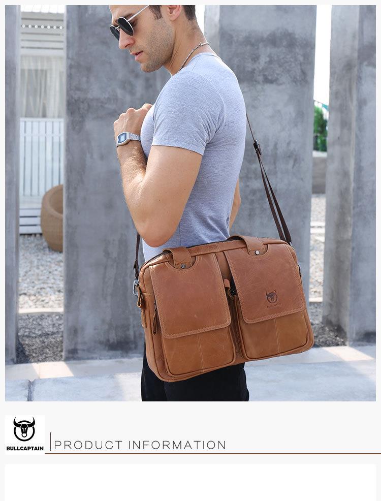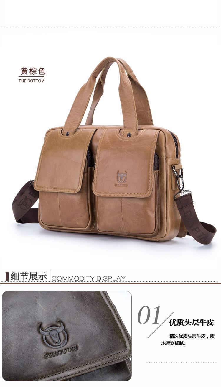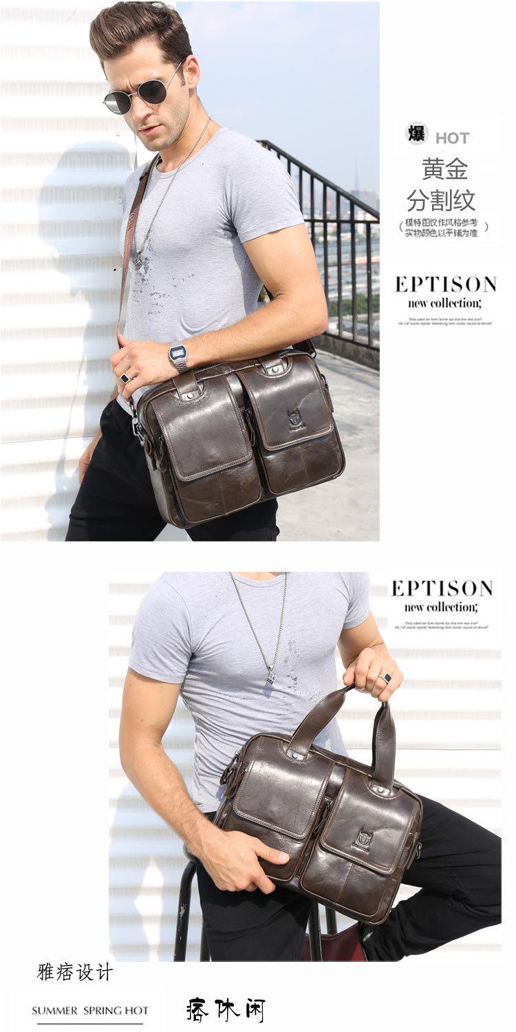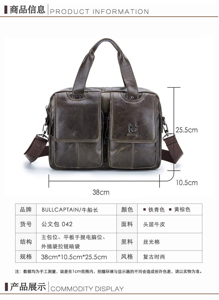 牛船长男士真皮多功能单肩斜挎男包头层牛皮时尚手提公文包