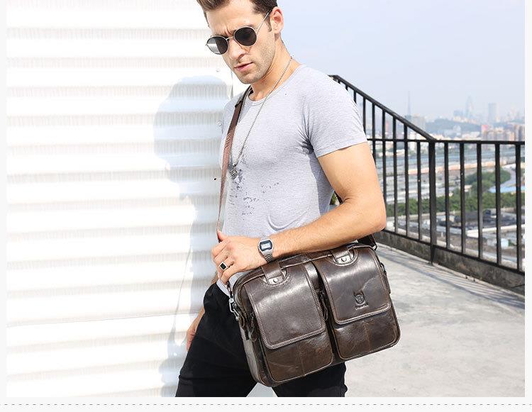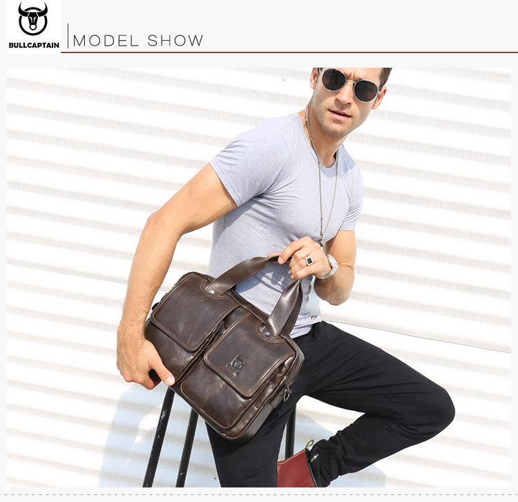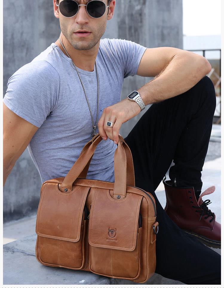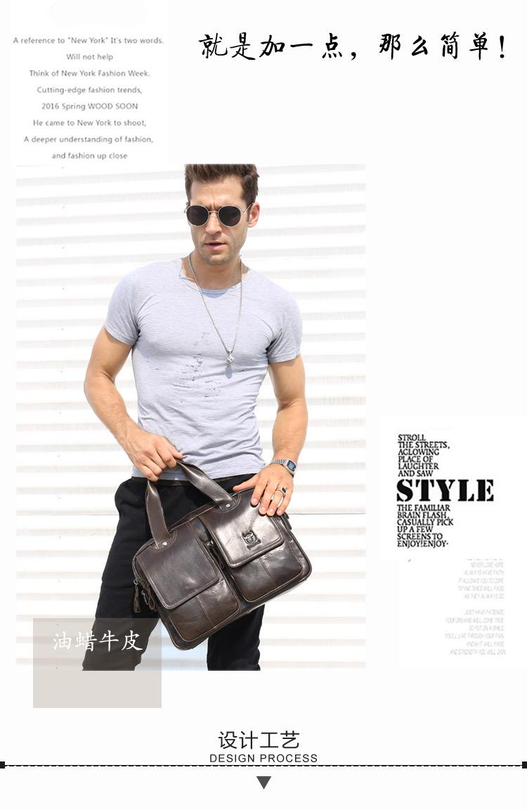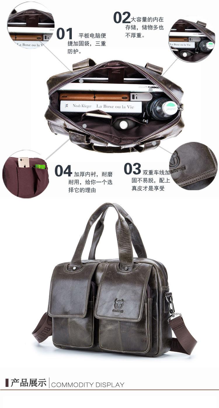 牛船长男士真皮多功能单肩斜挎男包头层牛皮时尚手提公文包