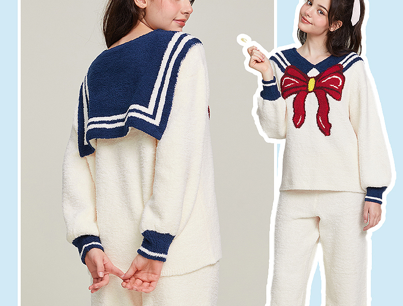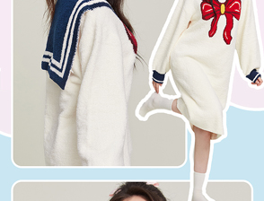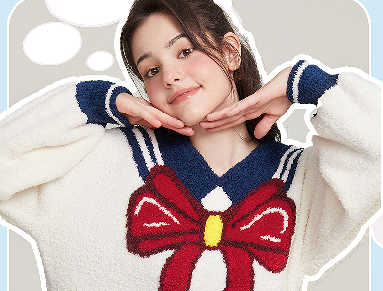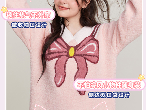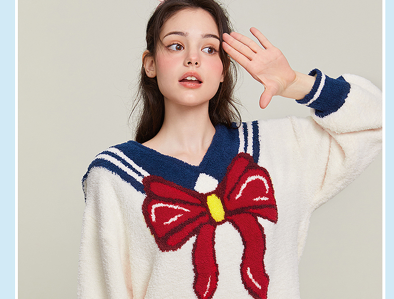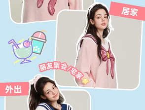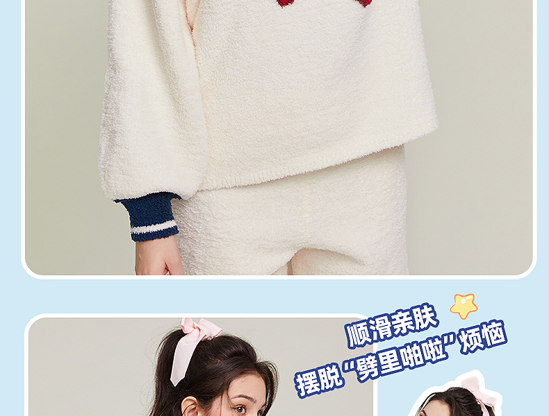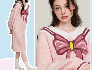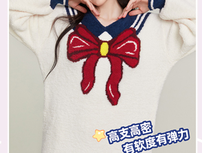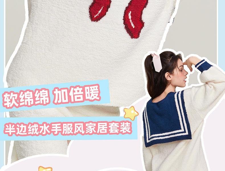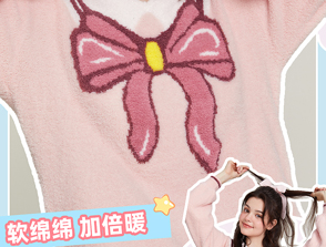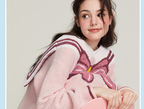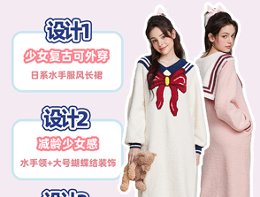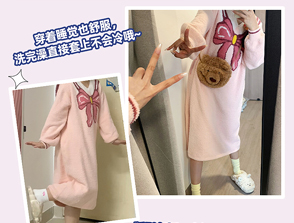 半边绒保暖女家居服V领长袖简约珊瑚绒睡裙秋冬新款-杰琳