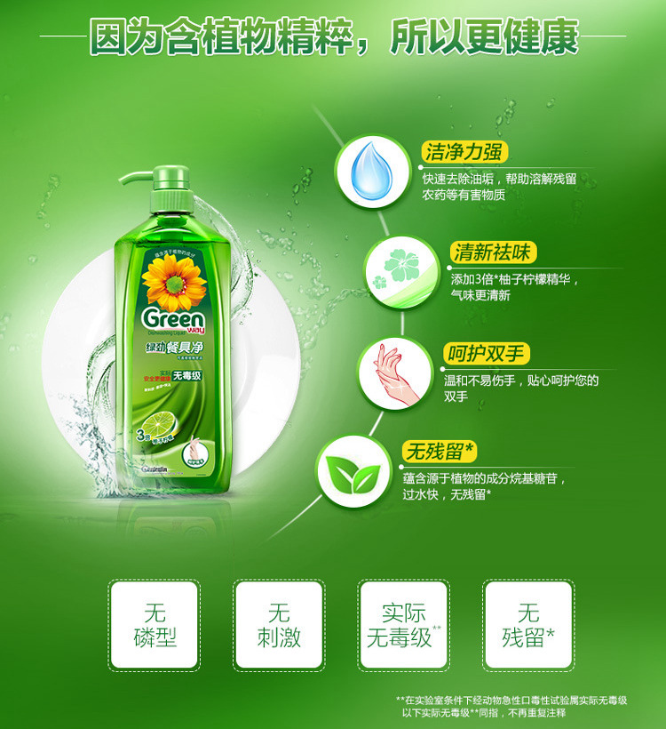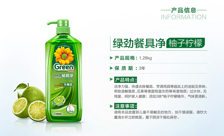 威露士 绿劲餐具净柚子柠檬洗洁精 1.28kg*1瓶(包邮直发)
