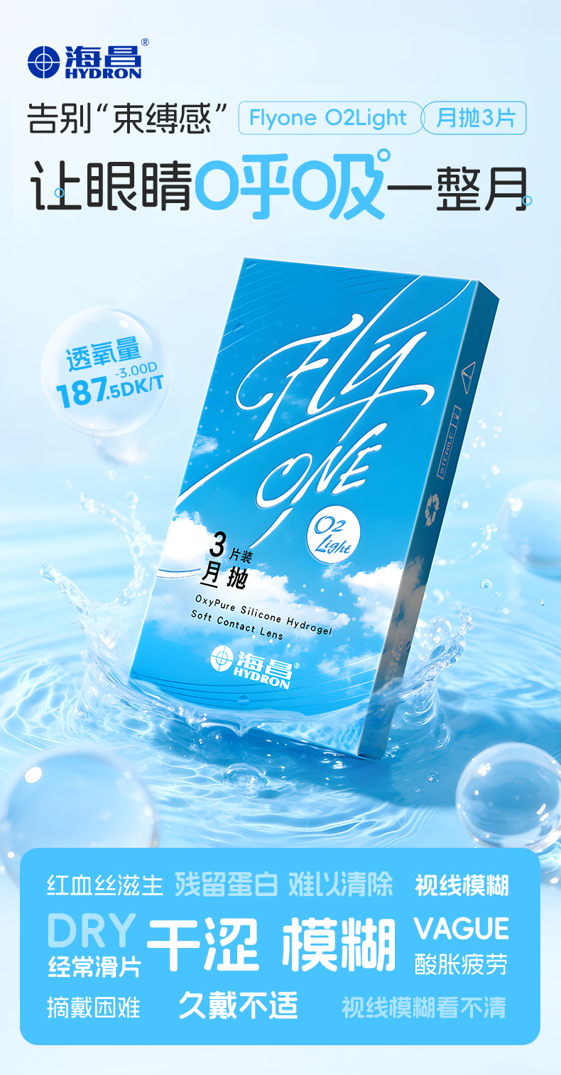 【疯狂星期四】海昌Flyone-O2light月抛3片装