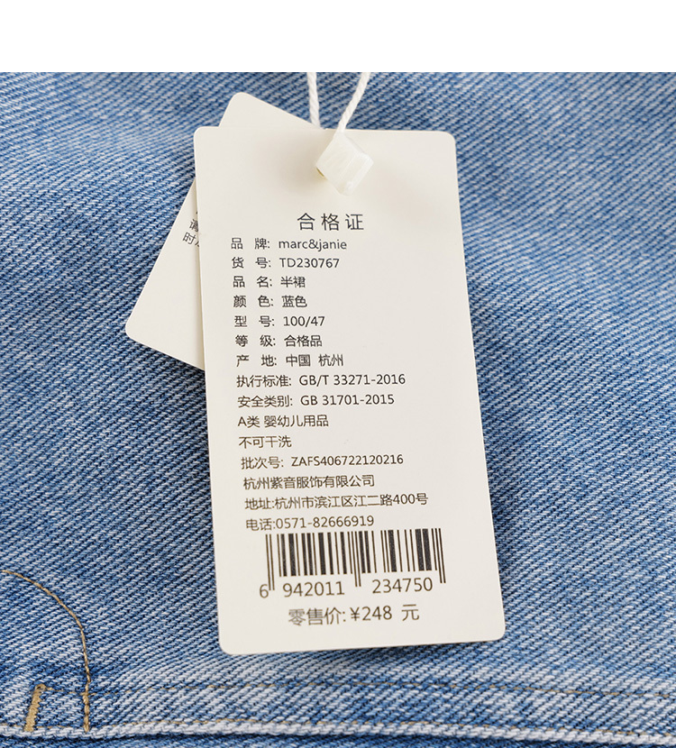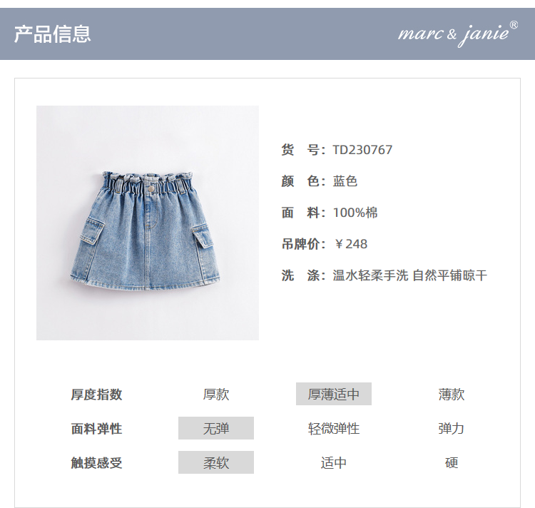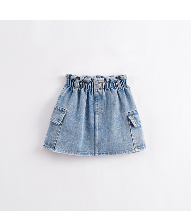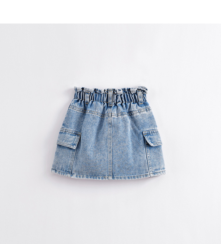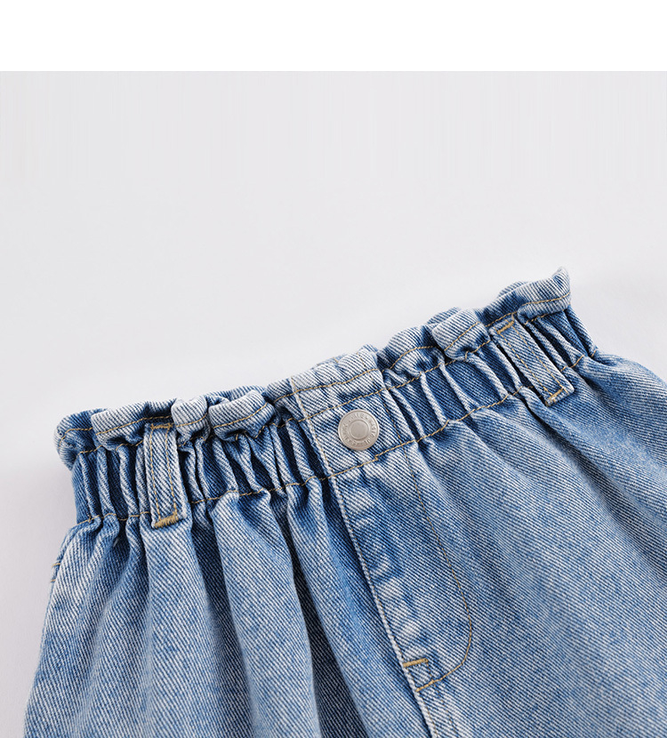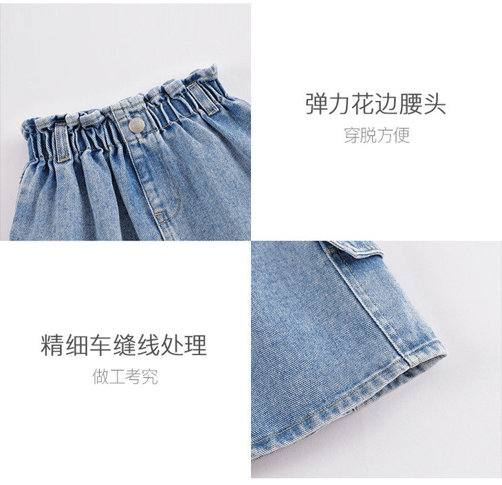 马克珍妮春夏新款 女童花边腰头大口袋纯棉牛仔短裙230767