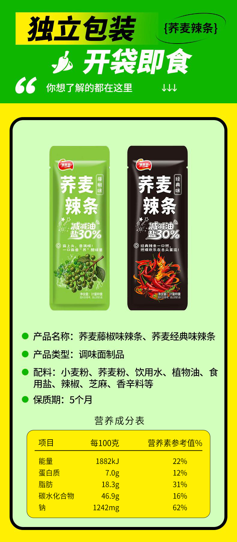 【赠2袋试吃❗️新品荞麦辣条】非油炸工艺,麻辣适口,好吃不腻,藤椒经典麻辣辣条辣片网红解馋小吃校园宿舍零食