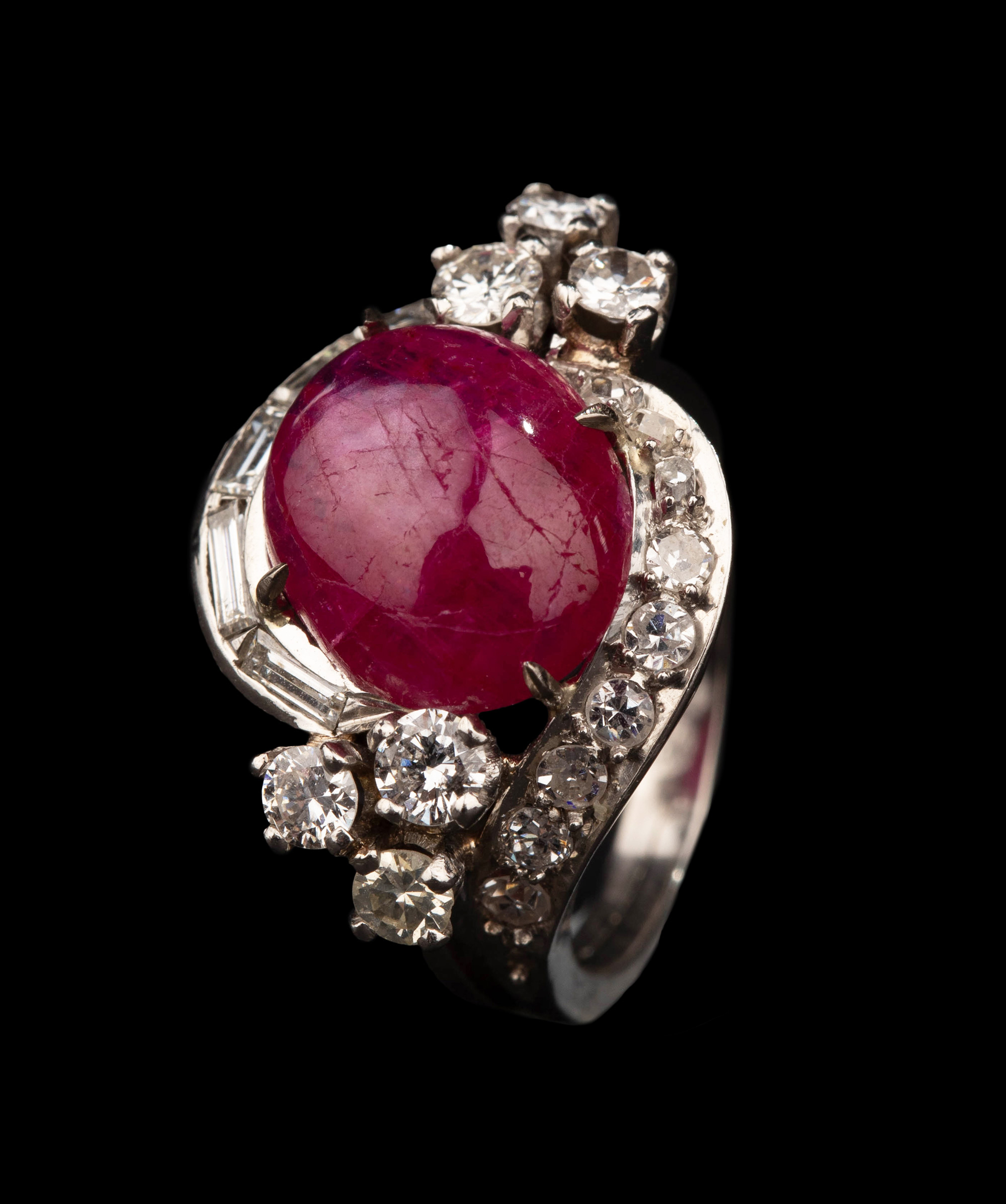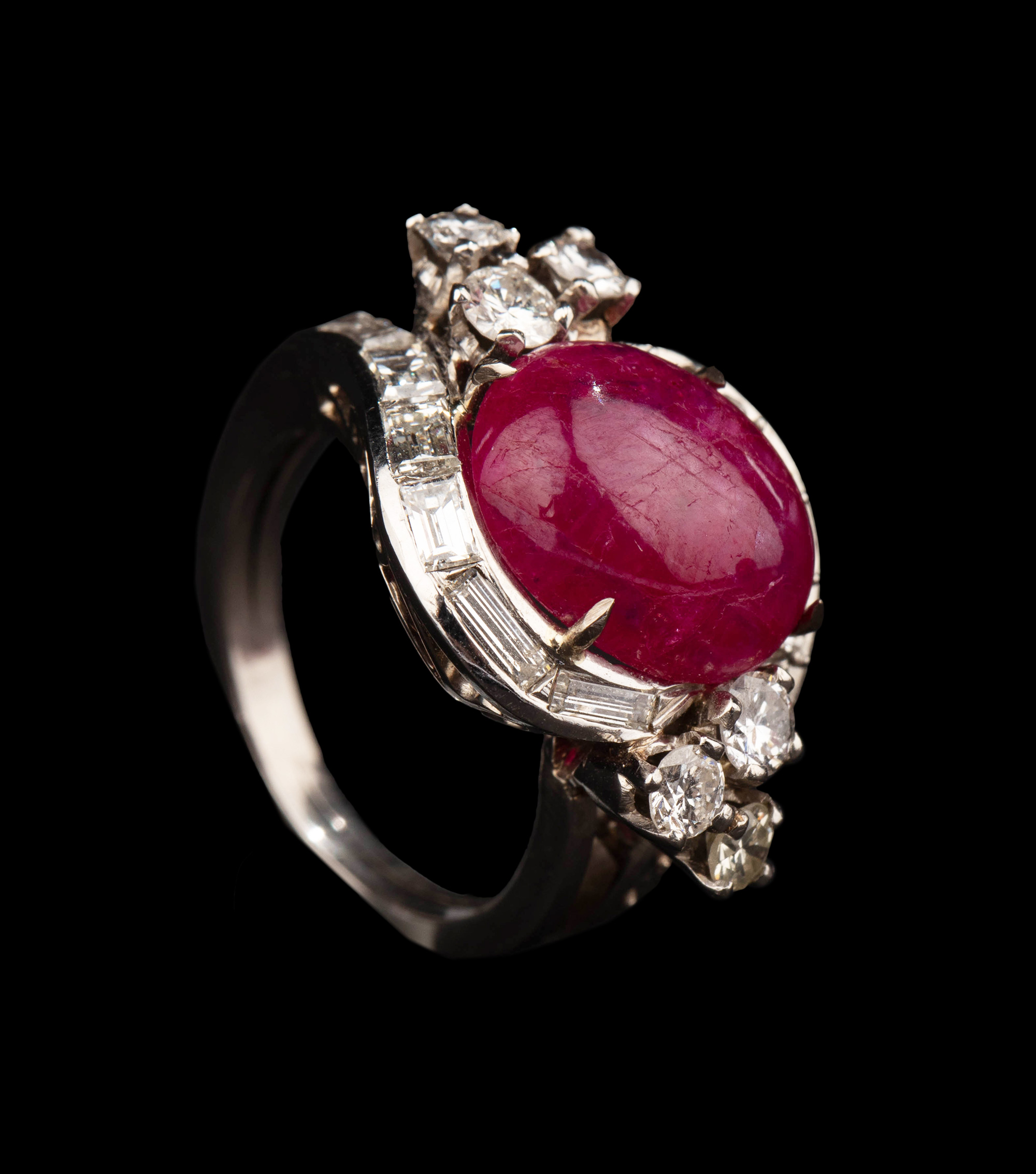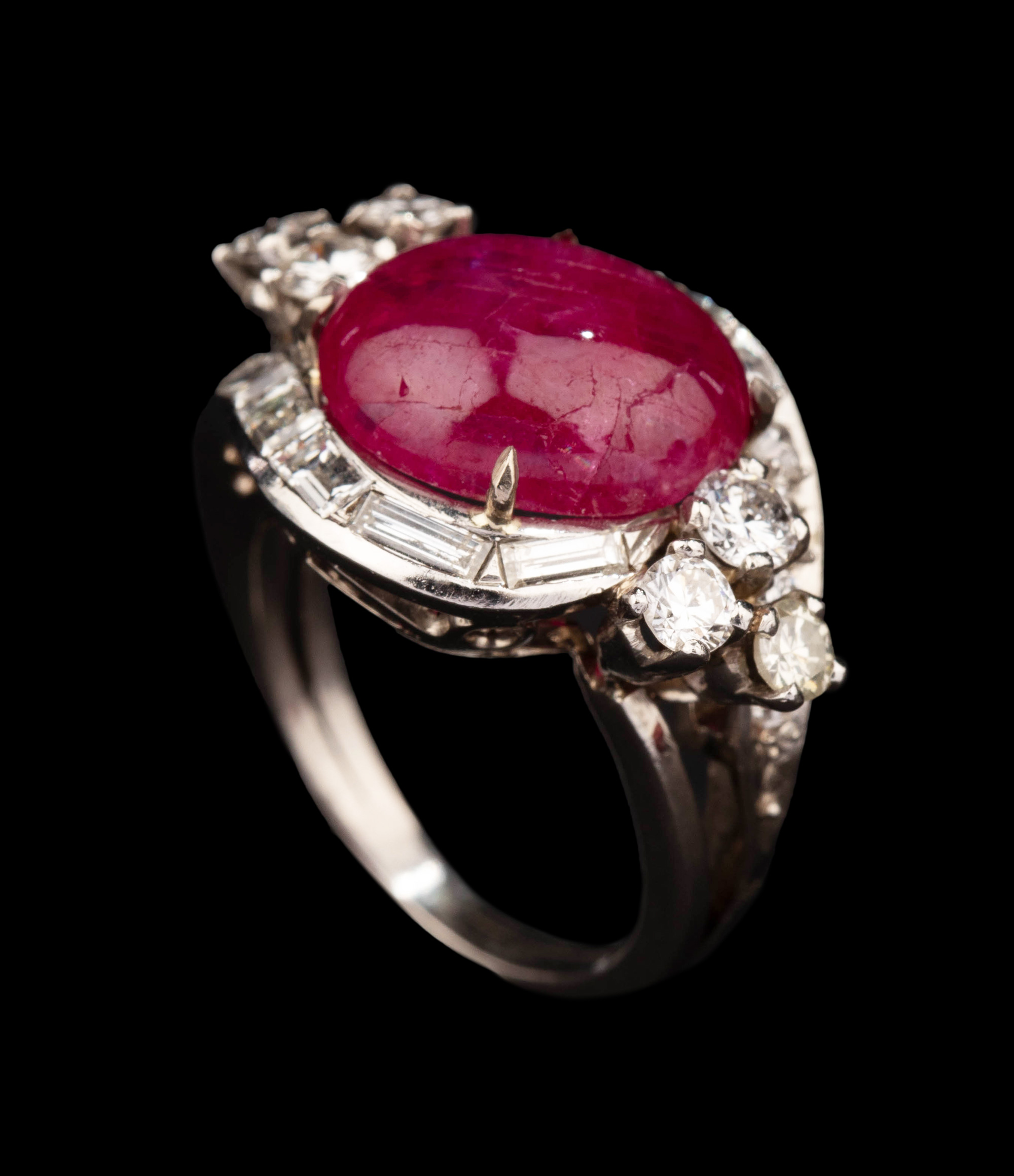 20世纪法国出品花簇式造型铂金镶嵌缅甸无烧红宝石及钻石戒指