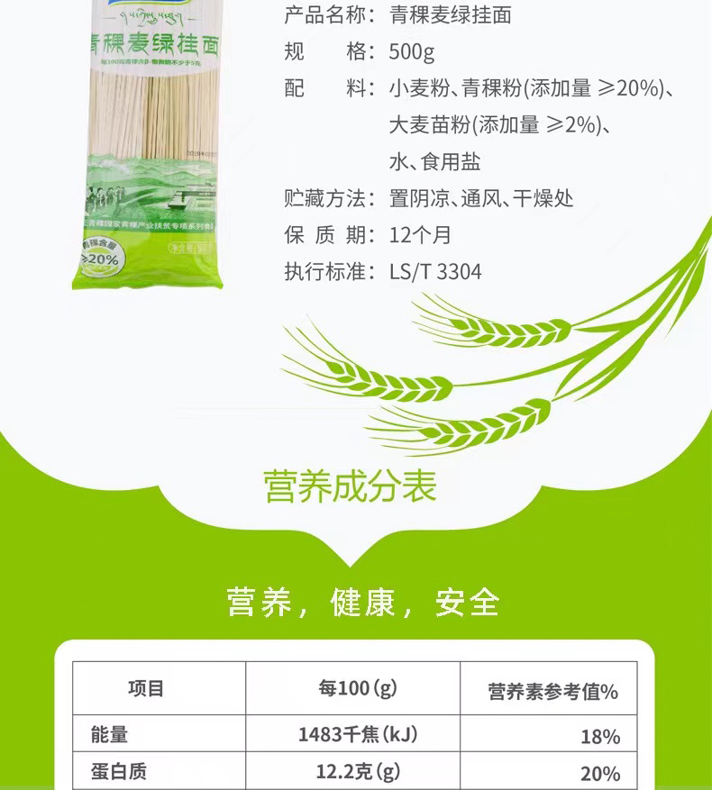 【包邮】青稞麦绿挂面 添加西藏青稞粉 劲道爽滑 麦香浓郁 耐住不糊汤 500g/袋