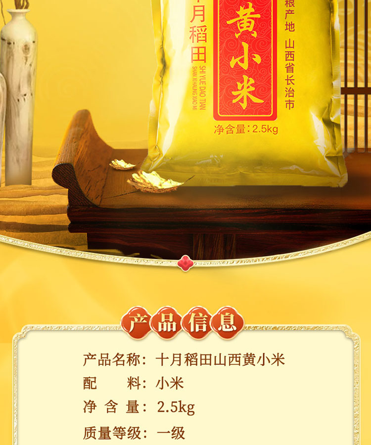 十月稻田 山西黄小米 溯源 五谷杂粮 山西特产 小米粥小米黄小米月子米粗粮真空包装家庭袋装2.5kg