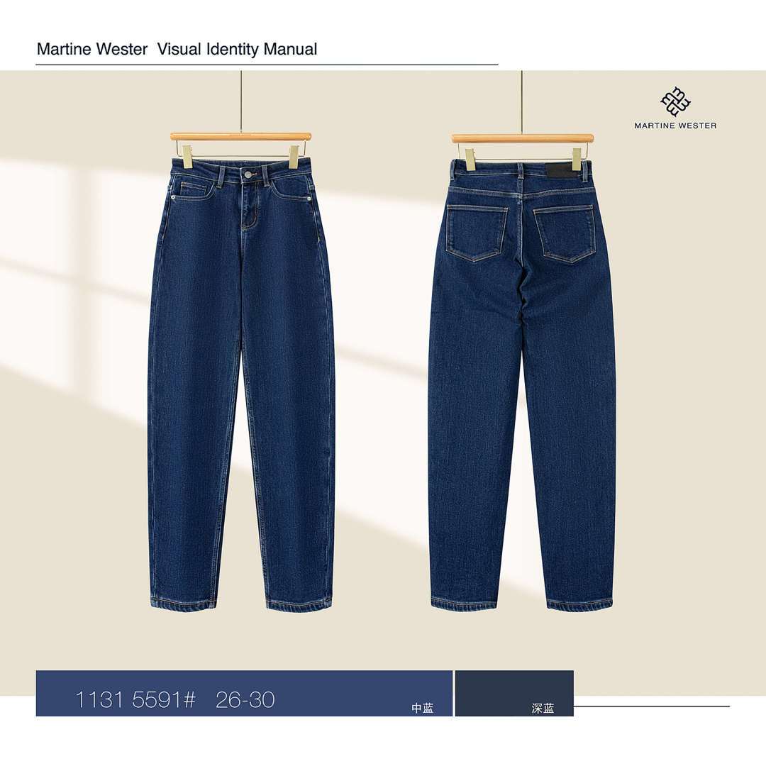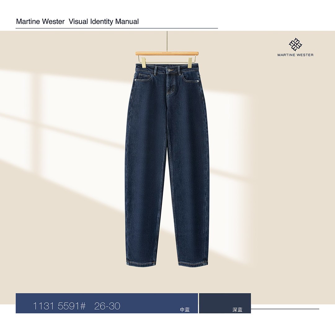 Martine Wester 女微灯笼廓型弹力磨毛牛仔裤: 精选弹力抓绒牛仔面料,亲肤保暖。 宽松的微灯笼裤型,率性利落,上身就是显瘦显腿长。