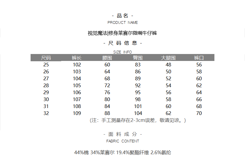 视觉魔法|修身莱赛尔微喇牛仔裤