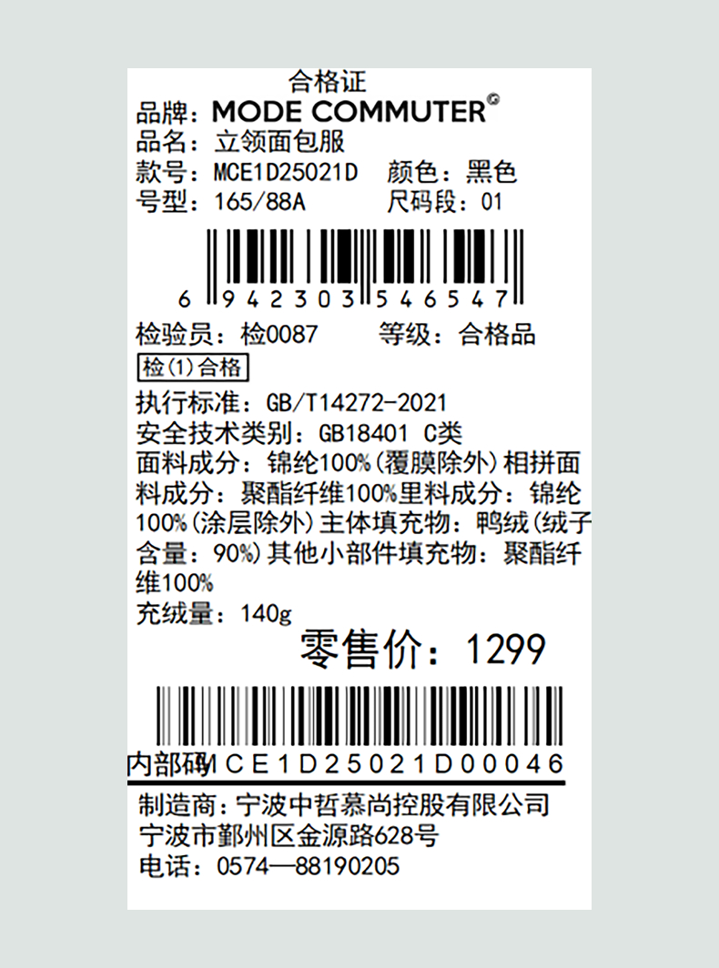 MODE COMMUTER | MC冬季立领面包服简约时尚通勤男MCE1D25021D