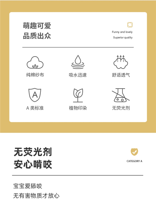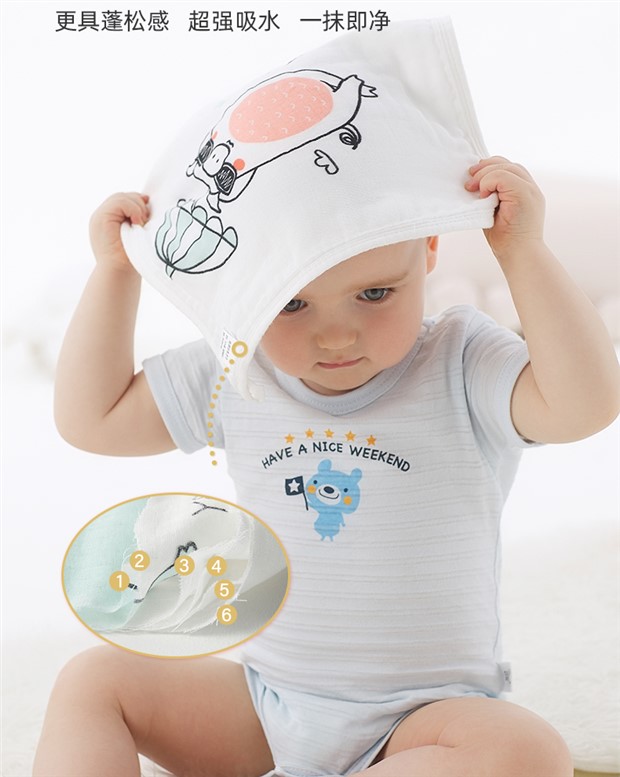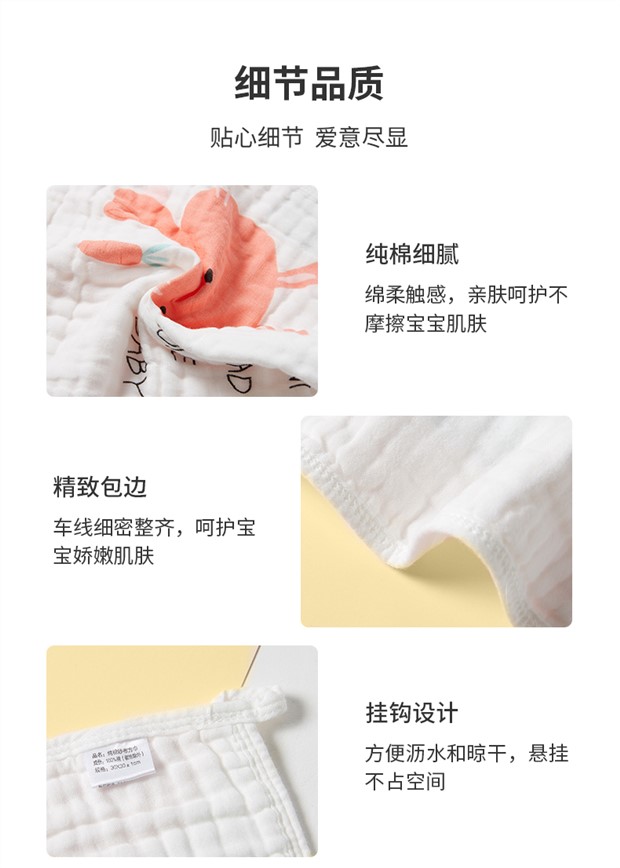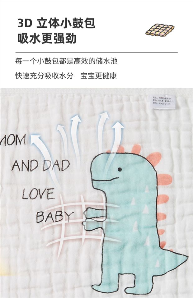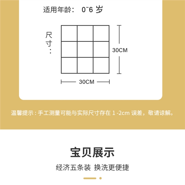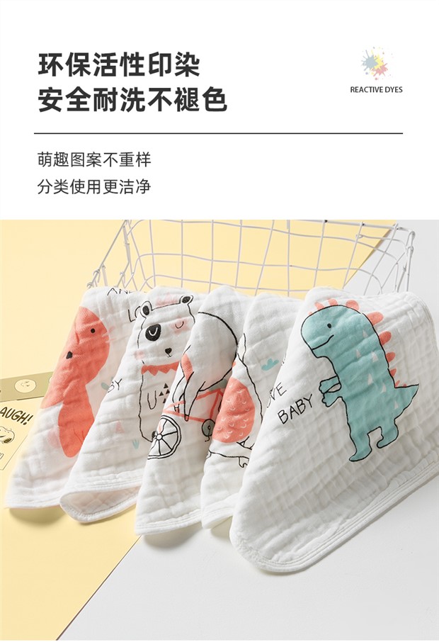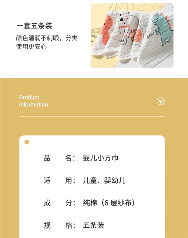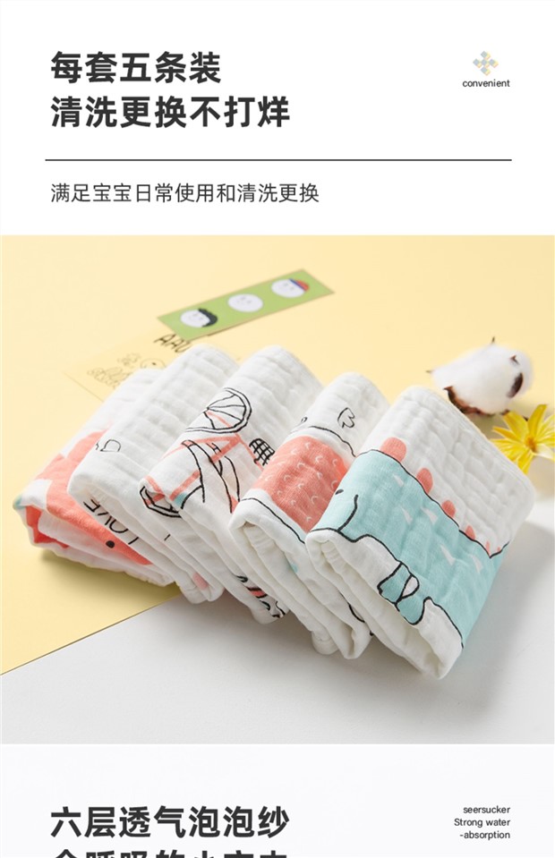全棉纱布五条装精梳高密口水巾5条装小方巾