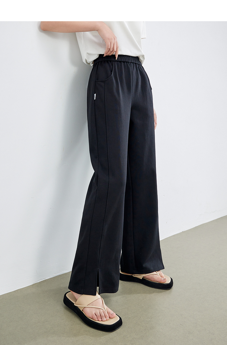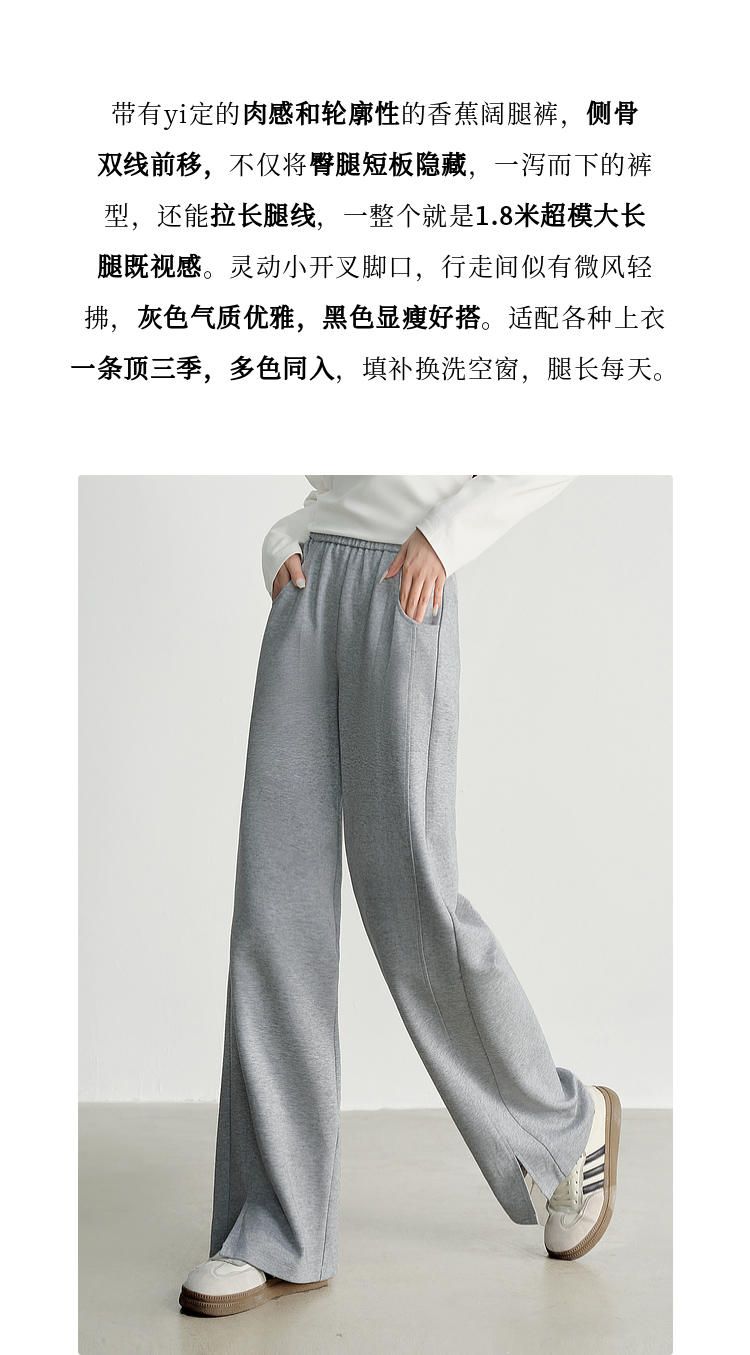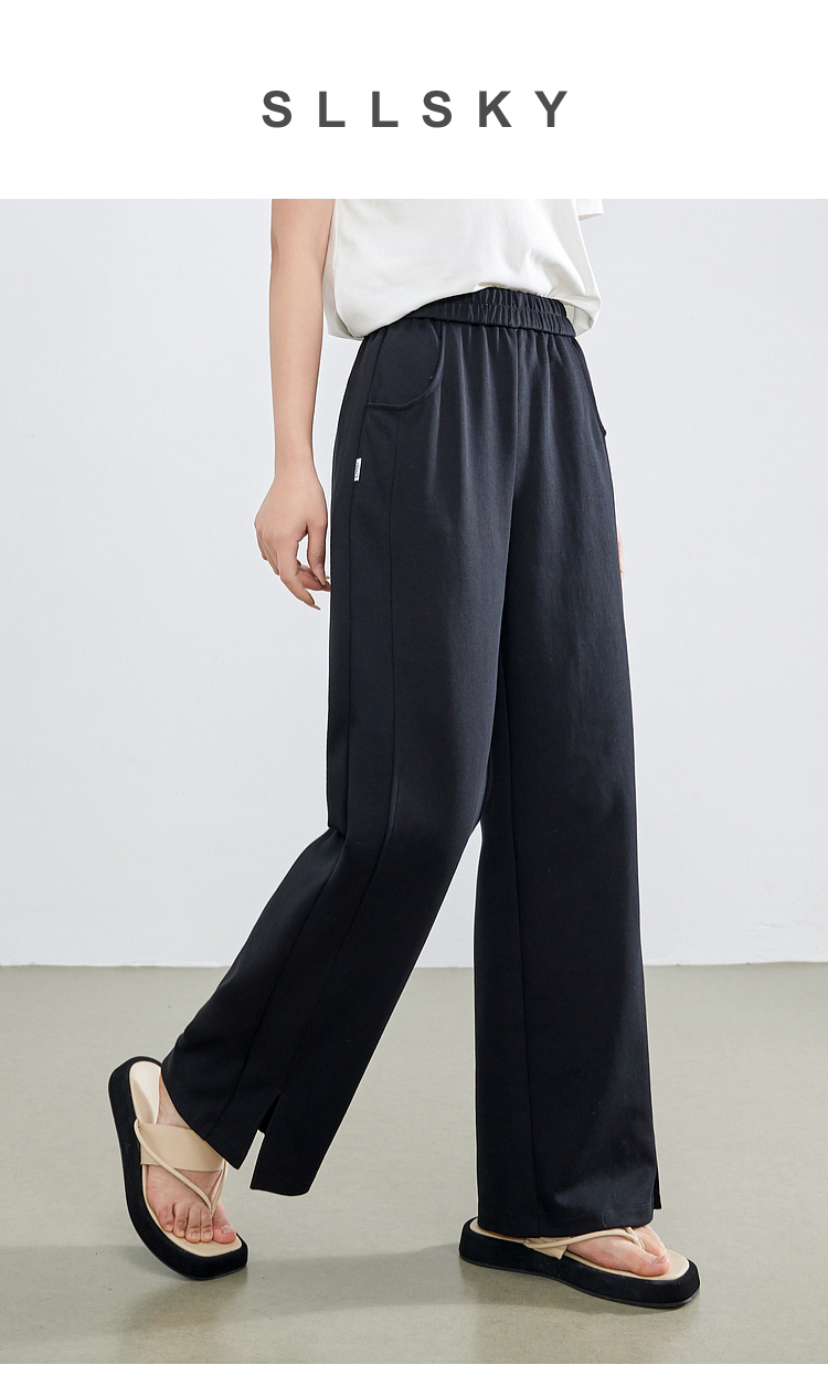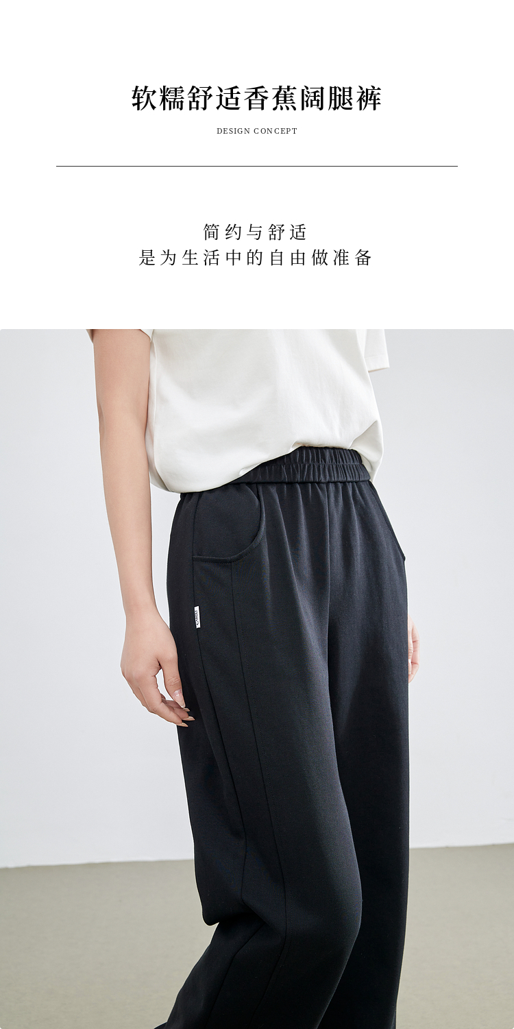 【专属特价】熙世界黑色运动阔腿香蕉裤2025夏季新款高腰休闲卫裤窄版直筒裤
