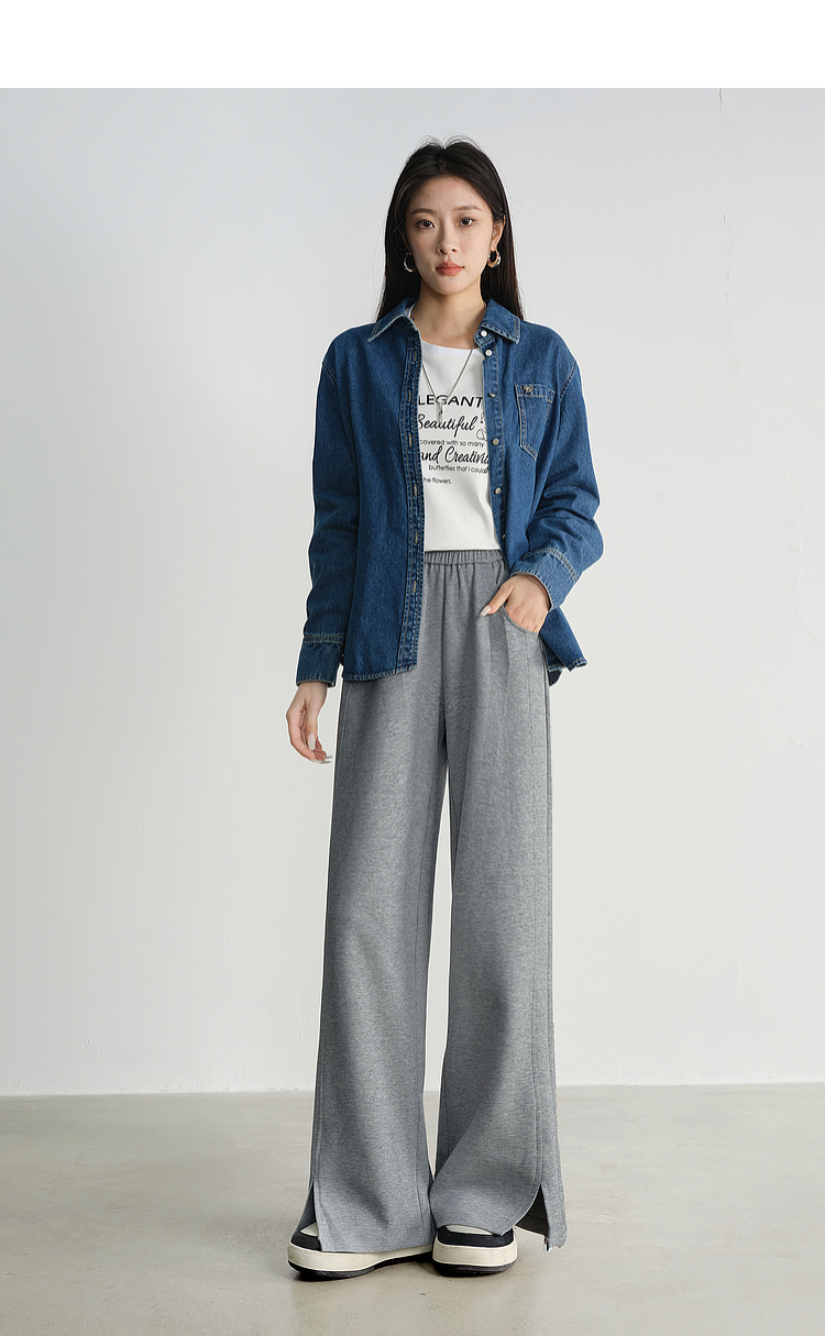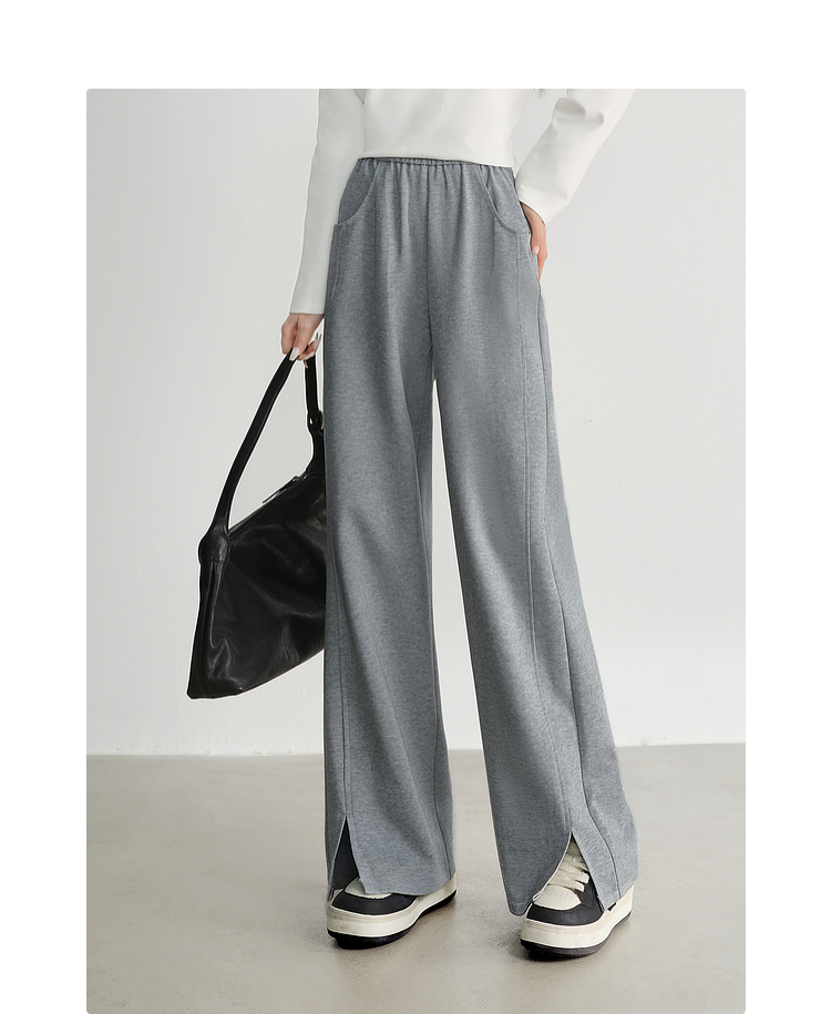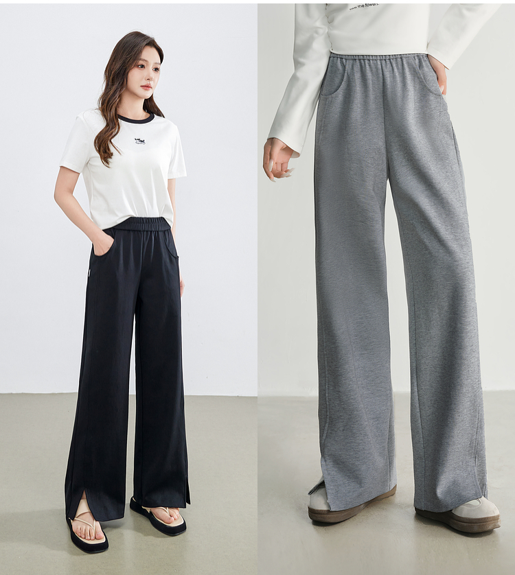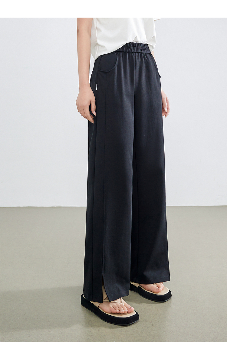 【专属特价】熙世界黑色运动阔腿香蕉裤2025夏季新款高腰休闲卫裤窄版直筒裤