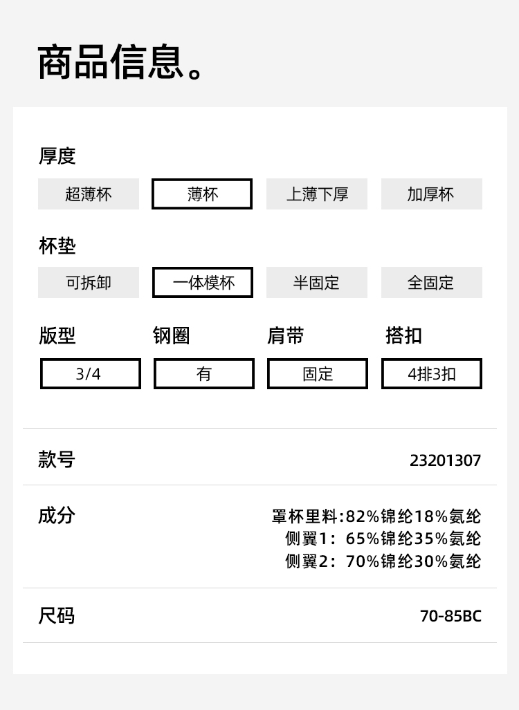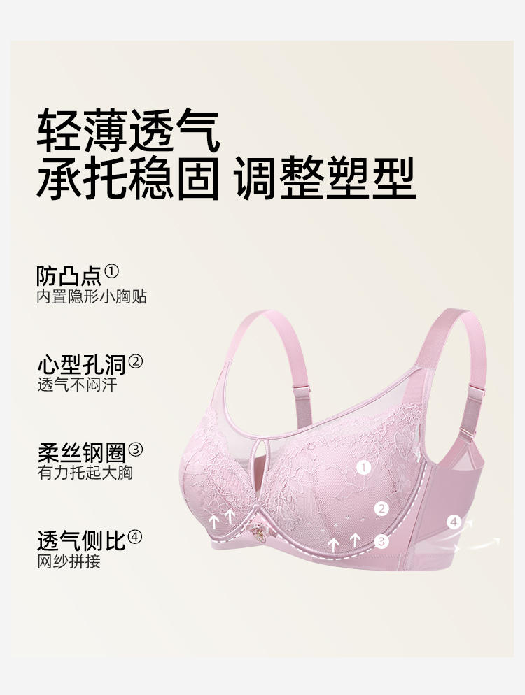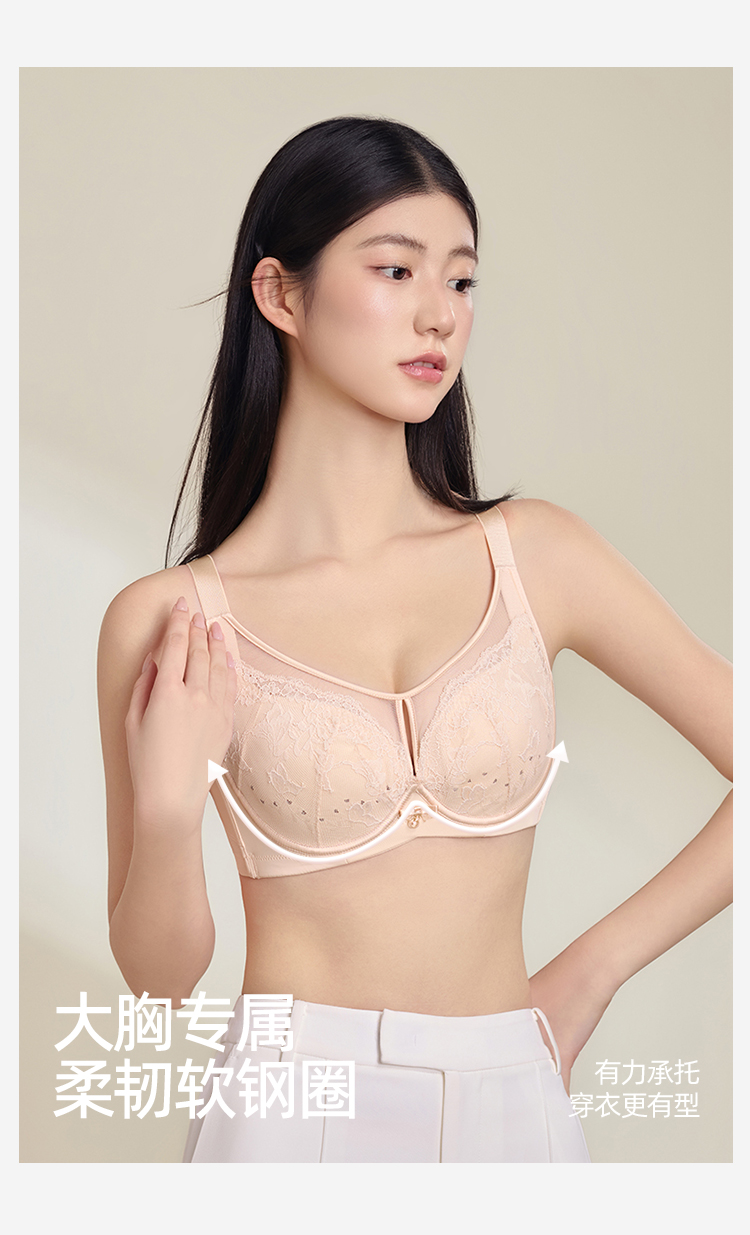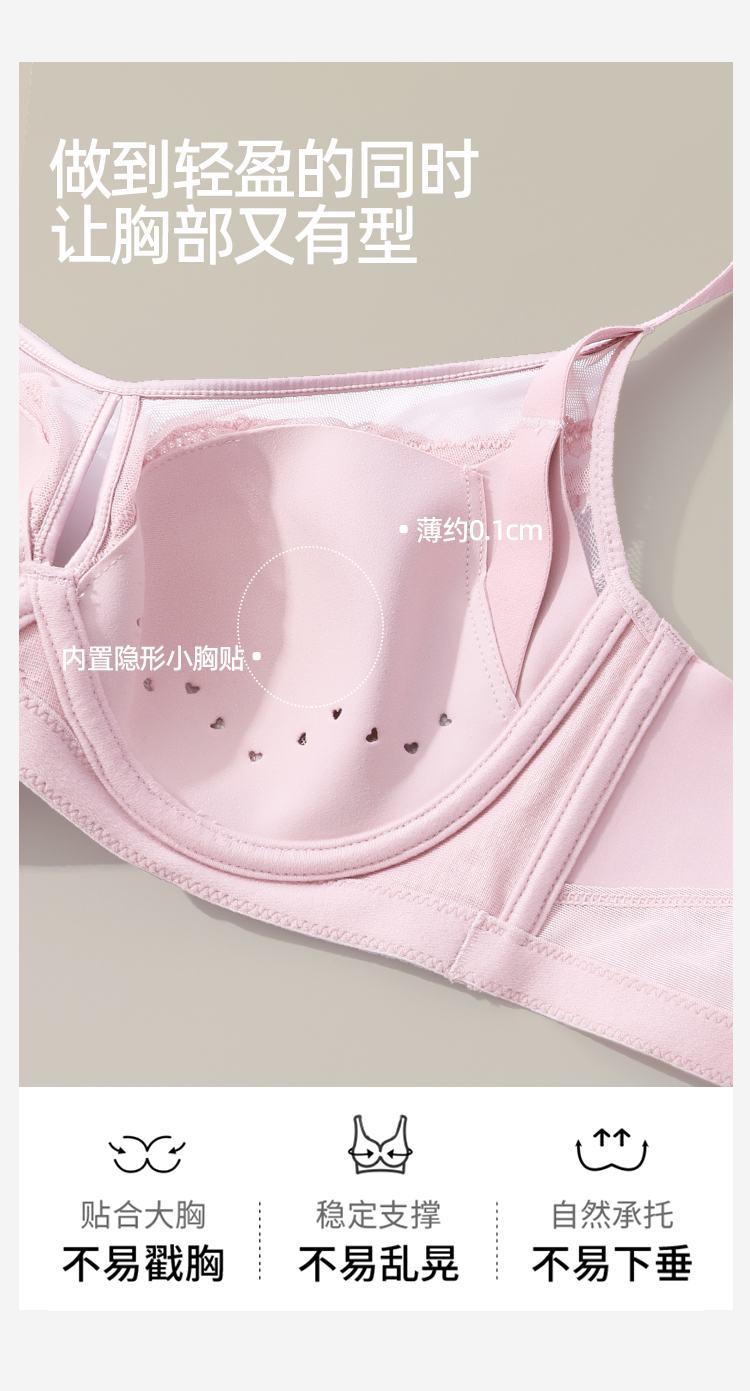 【商场同款】熳洁儿 弹性纸片杯文胸超薄大胸显小蕾丝镂空设计23201307