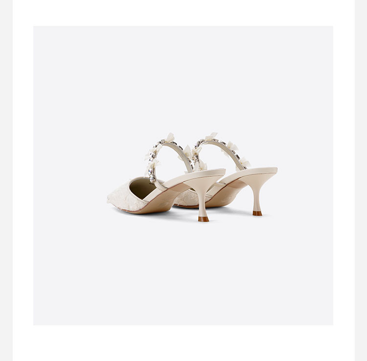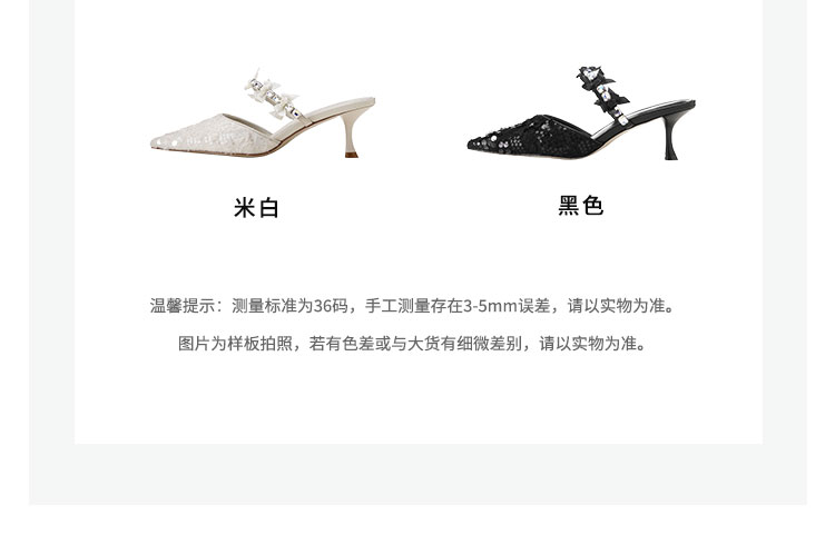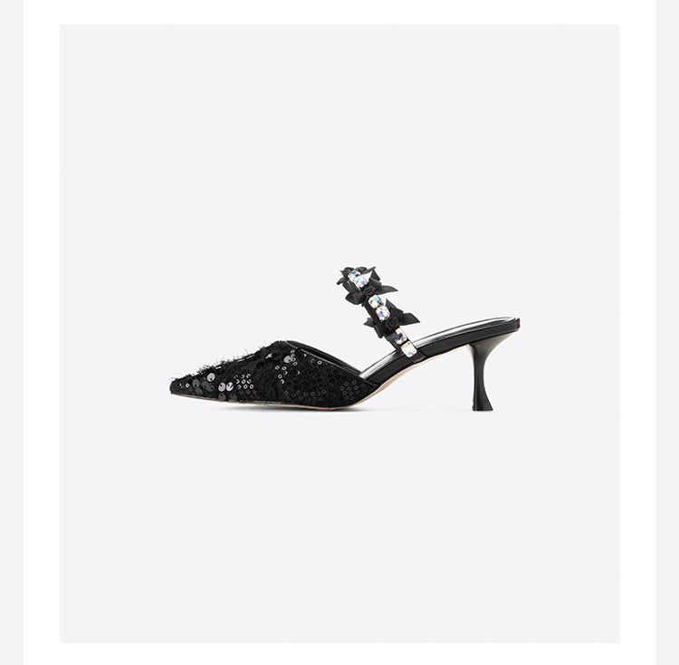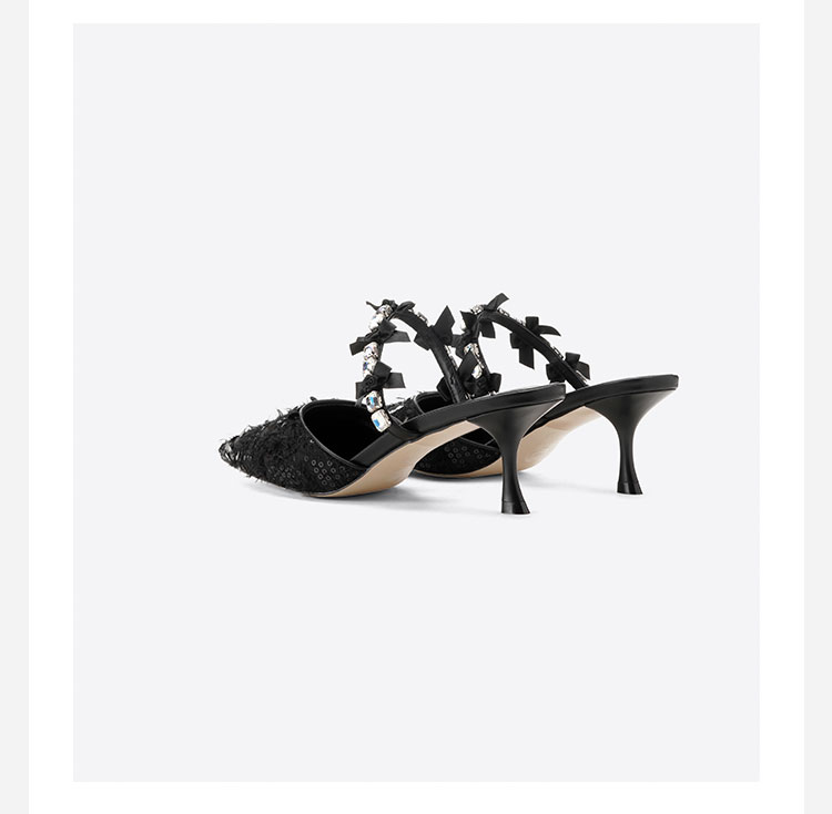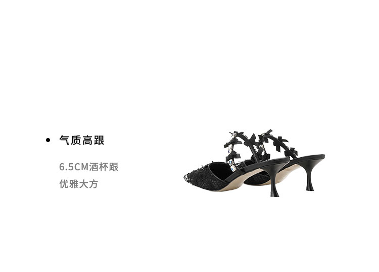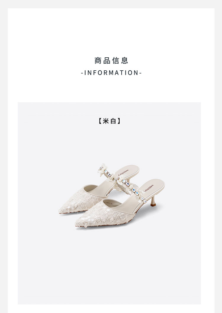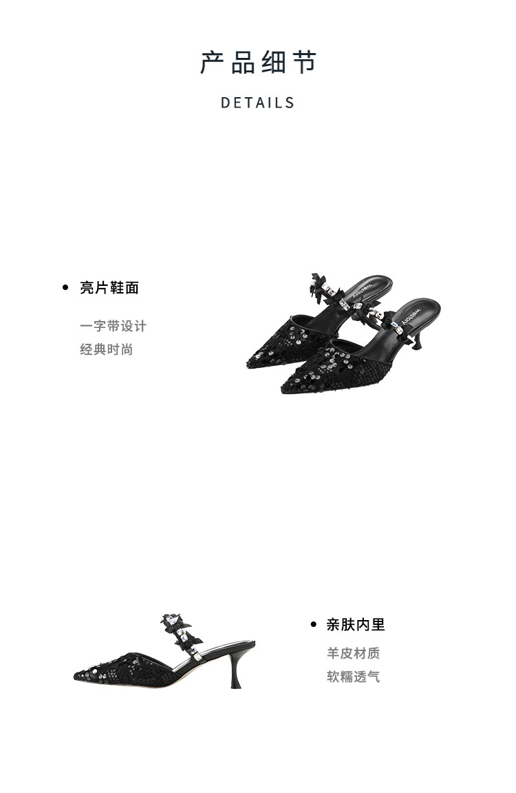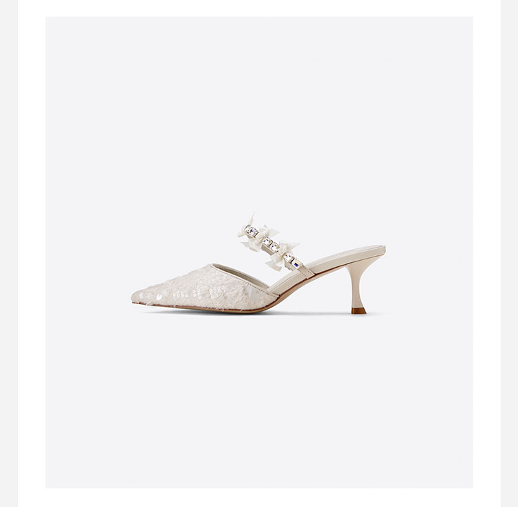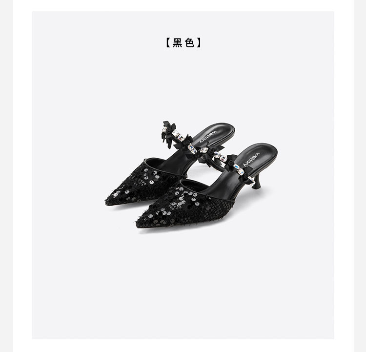 Westory夏季玛丽珍带装点方形玻璃钻与玫瑰蝴蝶立体花饰中跟穆勒拖尖头包头W25AH59521