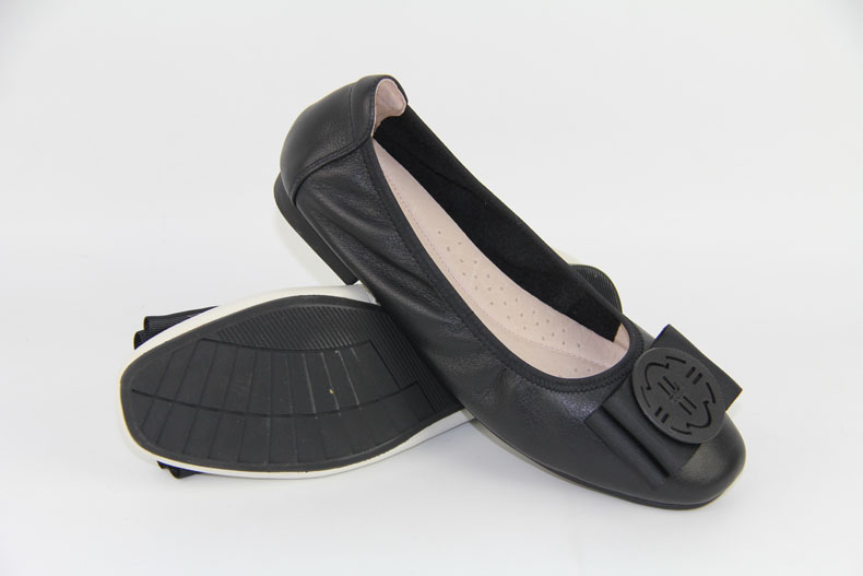 蝴蝶结平底鞋真皮浅口女单鞋低跟懒人鞋豪行正品29191652圆头百搭