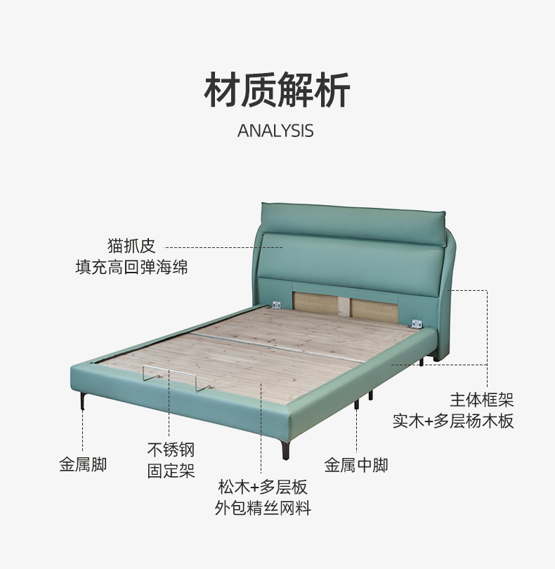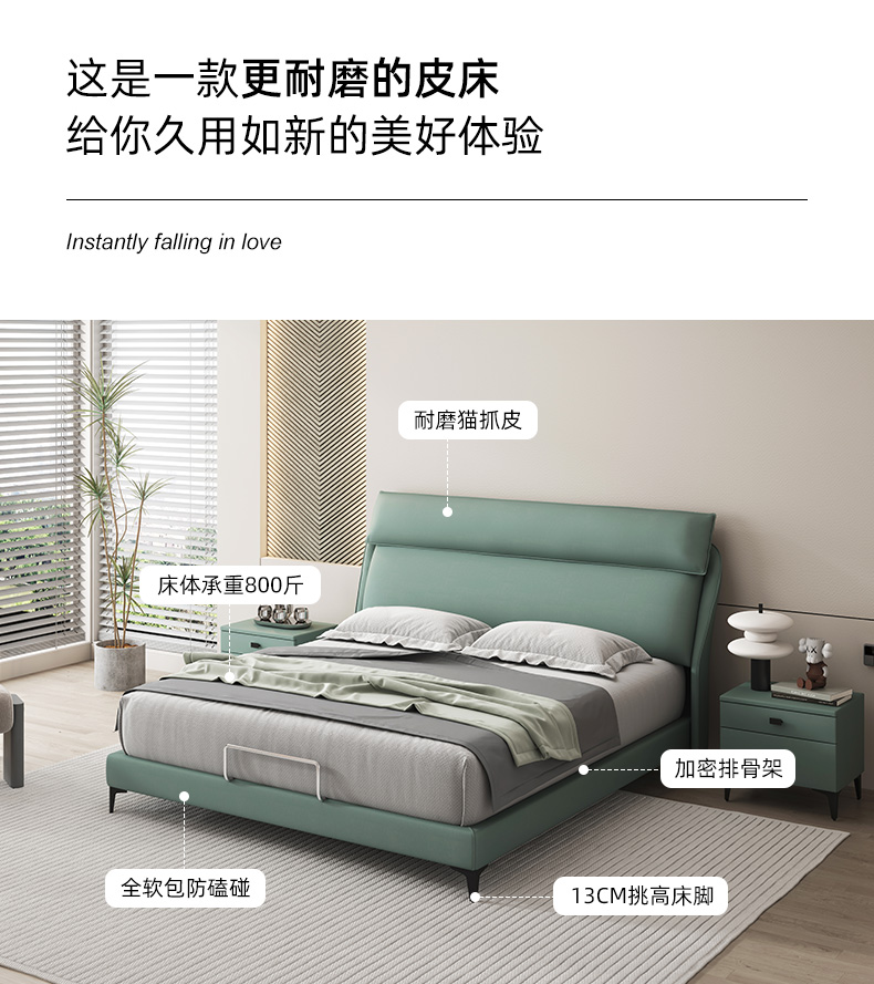喜梦宝科技布床现代简约布艺床卧室家具北欧主卧软包床猫抓皮