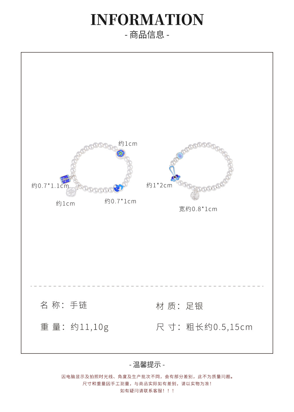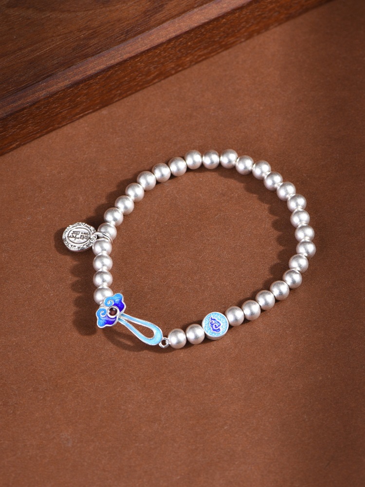 【眷恋福禄】足银磨砂银珠符牌葫芦烧蓝如意手链【SCH-CK40162-4】