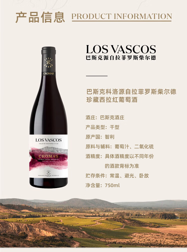 巴斯克科洛源自拉菲罗斯柴尔德珍藏西拉红葡萄酒750ml