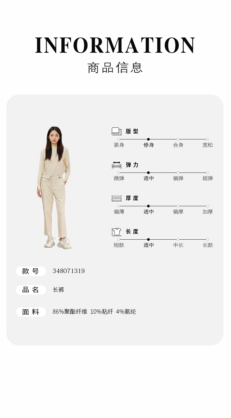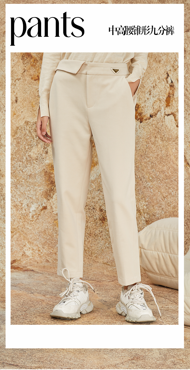 NUTS商场同款秋冬季纯色时尚简约高腰直筒显瘦休闲长裤女348071319
