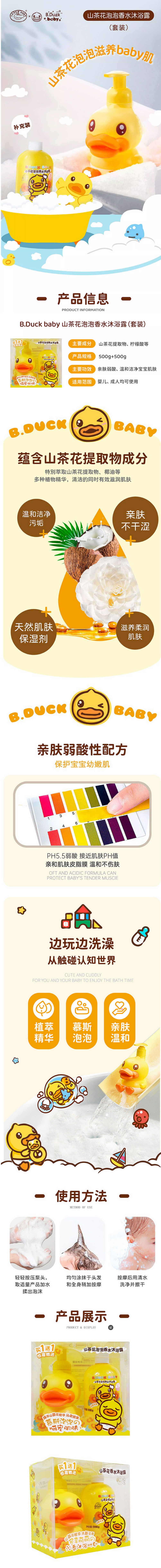 小黄鸭泡泡香水沐浴露套装500g+500g补充装-3035