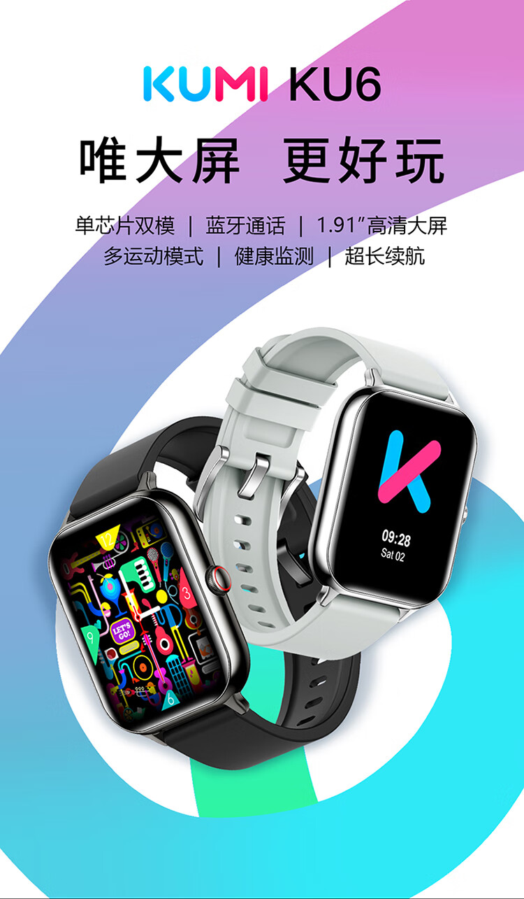 KUMI KU6 智能手表运动男女款多功能蓝牙通话离线支付NFC门禁心率血压睡眠监测