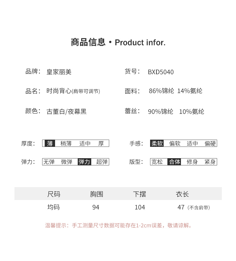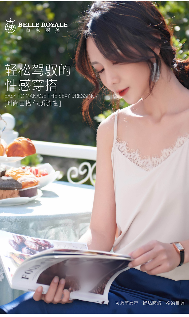 【秒杀品 不退不换】皇家丽美时尚百搭背心可调节肩带性感蕾丝吊带BXD5040