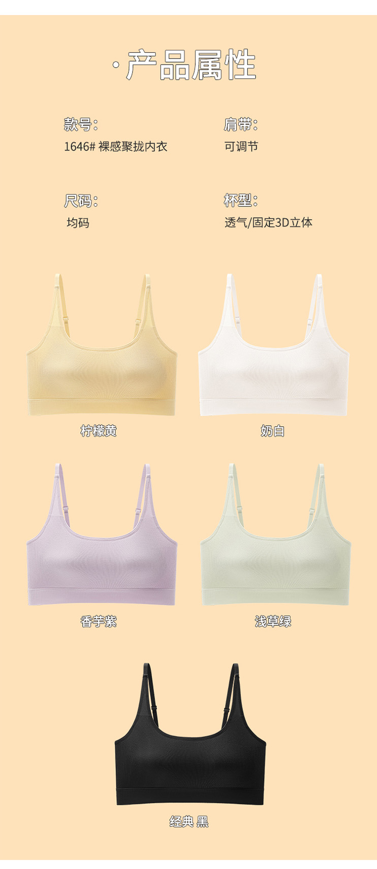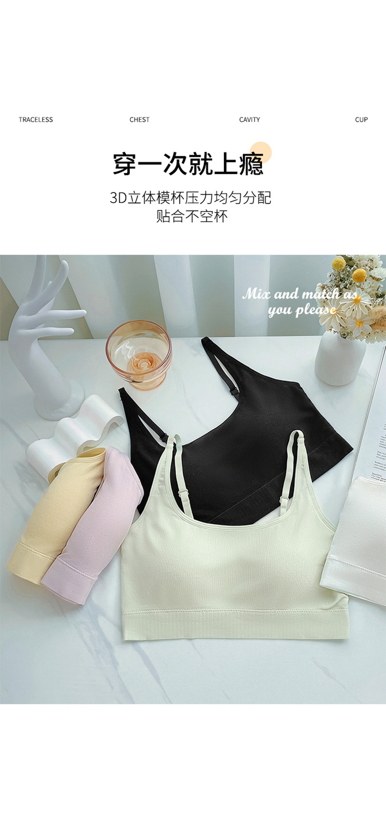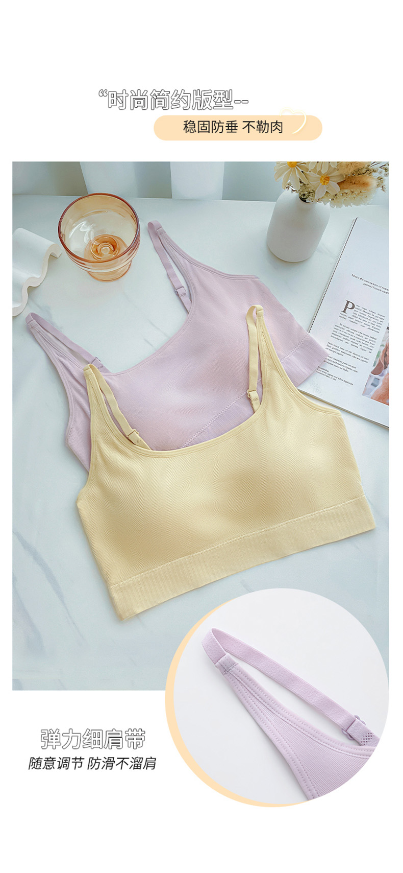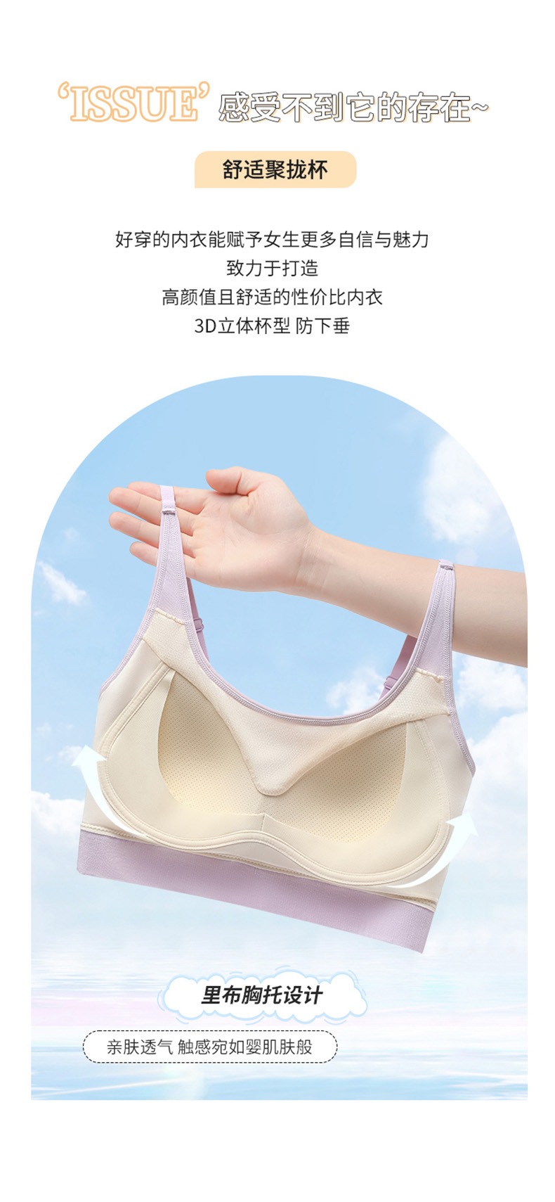 无钢圈轻柔杯 月牙形胸托 u型美背减压