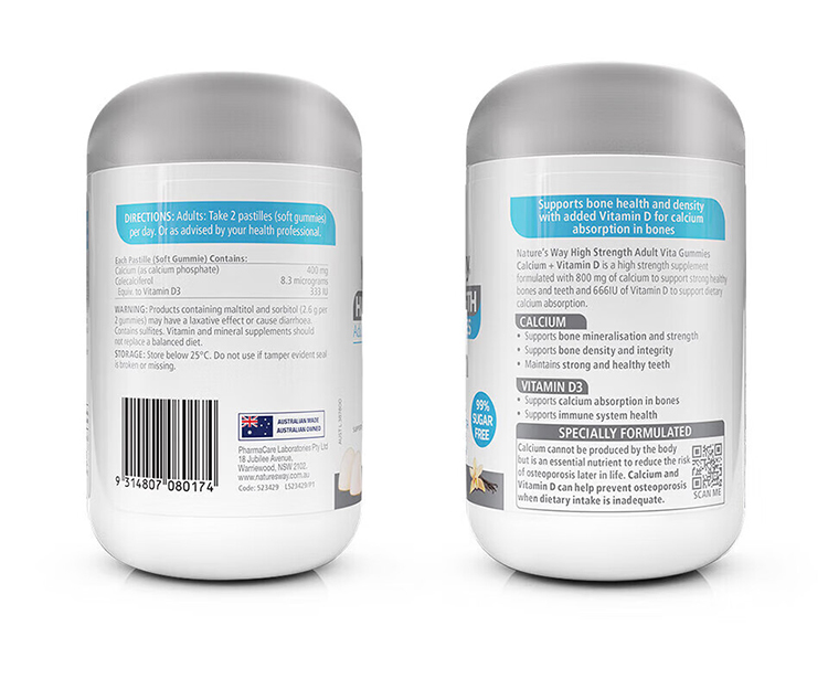 佳思敏(Nature's Way)高含量钙+维D3无糖软糖60粒